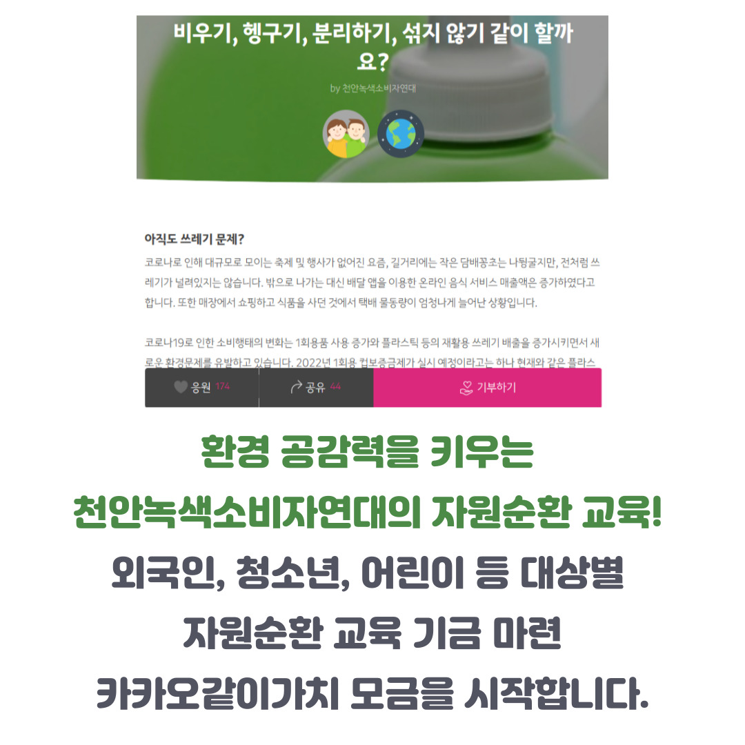 천안녹색소비자연대의 자원순환 교육 기금 마련을 위한 온라인 모금