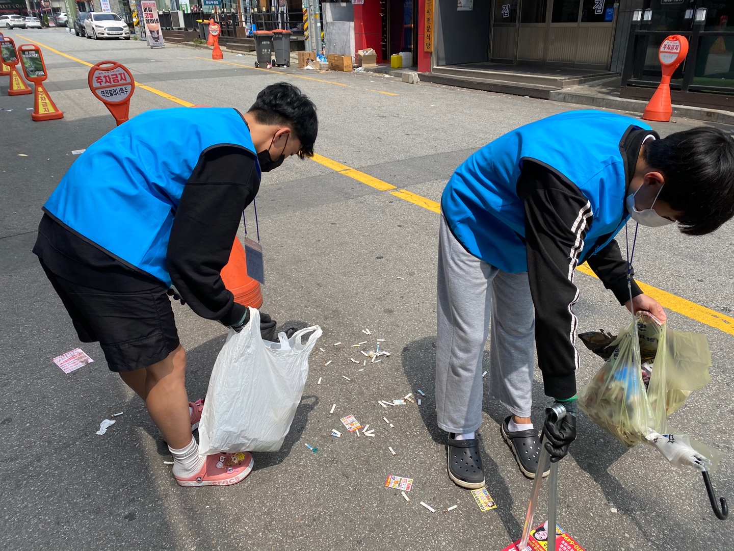 오늘 오전 두정동 먹자골목에서 <우리 동네 쓰줍림픽>의 결승전이 치러졌습니다. 예선전 입상팀 12팀과 쓰레기 줍기 참가에 의의를 두는 옵저버팀 1팀 총 13개 팀 38명이 참여해 쓰레기를 주웠습니다.