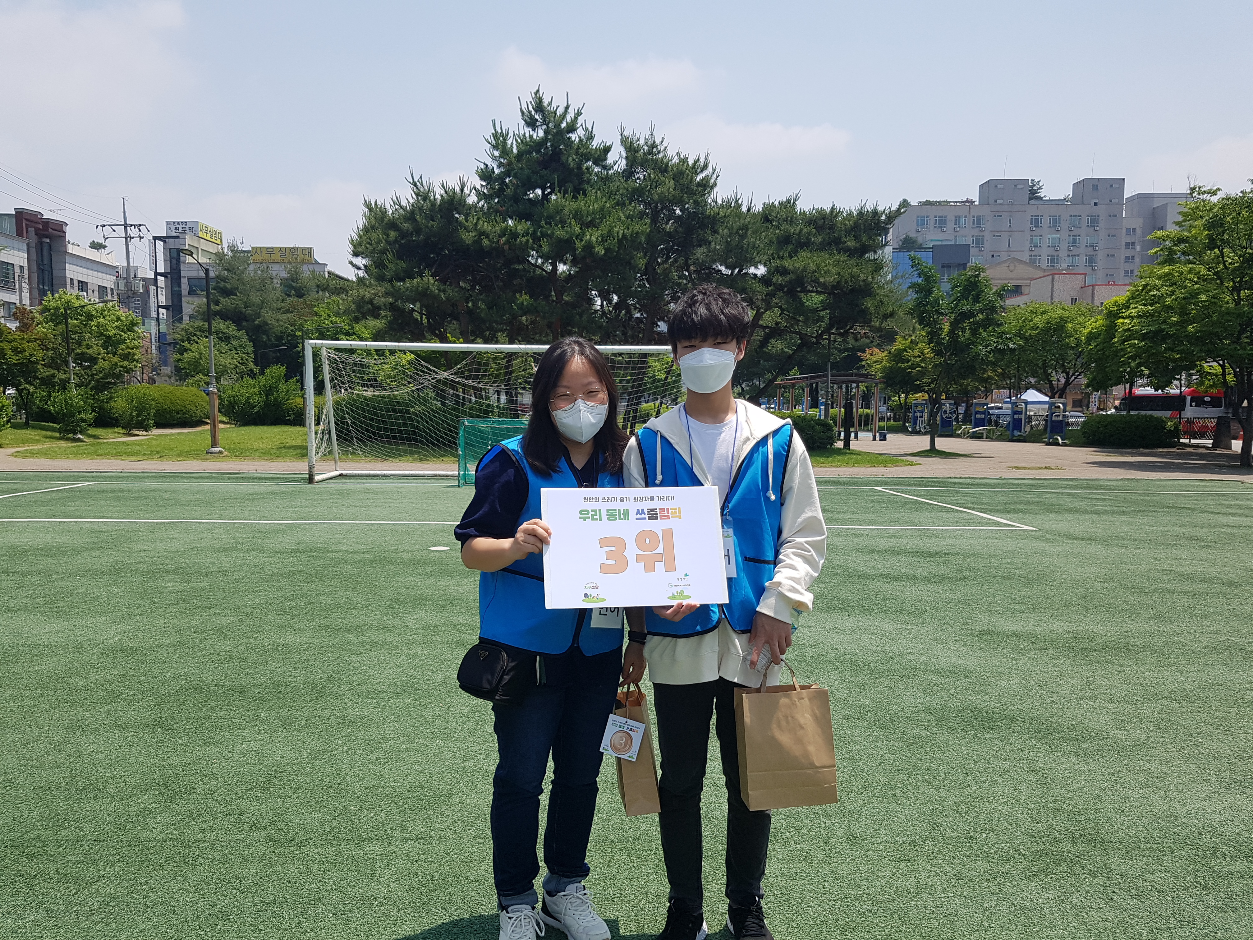 <우리 동네 쓰줍림픽> 3위는 예선전 3차에서 3위를 했던 ‘연어’팀입니다. 다른 팀 인원이 3명이었던 반면 2명이서 고군분투하여 3위에 올랐습니다.