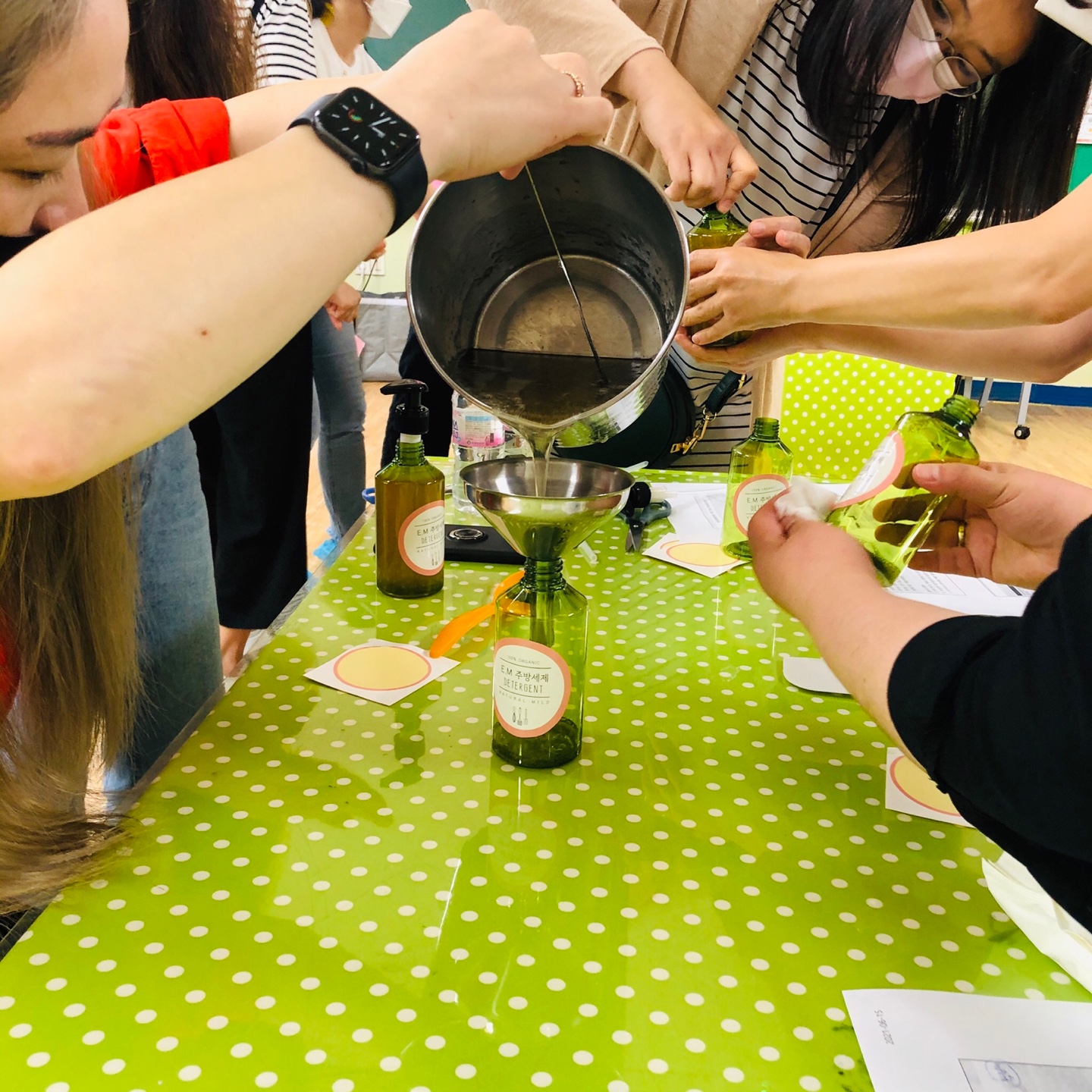 성거읍과 인연이 많네요. 삼환나우빌 아파트, 성거 벽산 아파트에서 공동주택 에너지 절약 사업을 함께 했었는데 오늘은 성거읍 소망초등학교 학부모회 대상으로 환경 교육을 진행했습니다. EM에 대해 알아보고 EM을 넣은 주방세제를 만들었습니다.