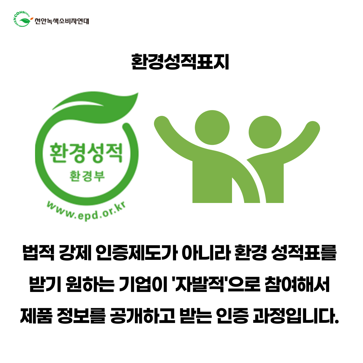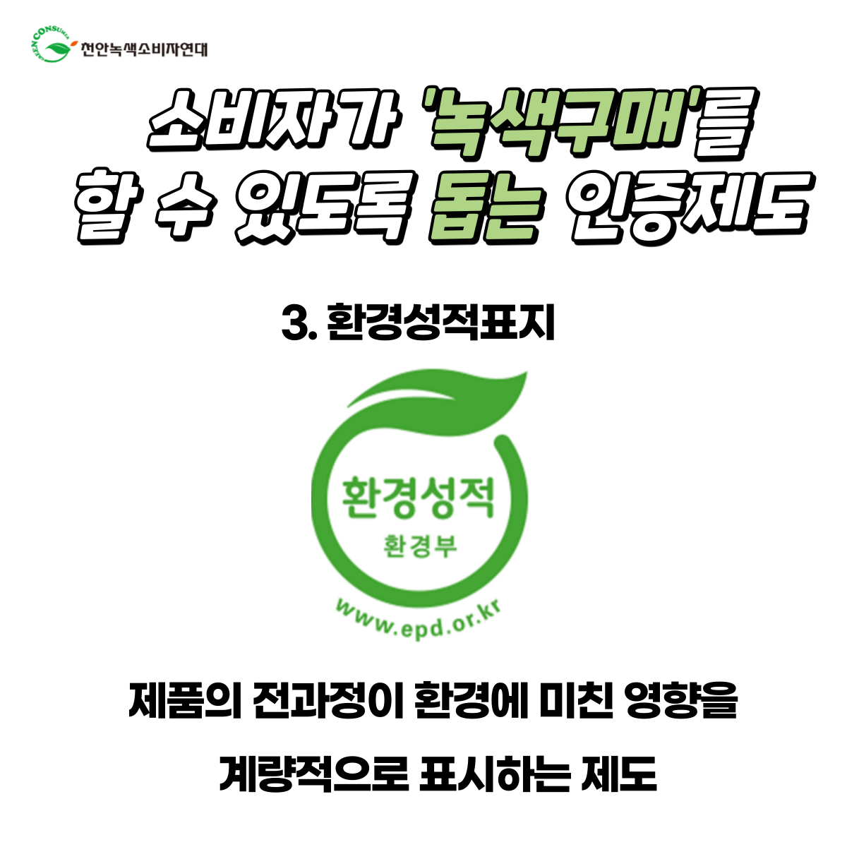소비자가 녹색구매를 할 수 있도록 돕는 인증제도 중 오늘은 환경성적표지 인증에 대해 알아봅니다.