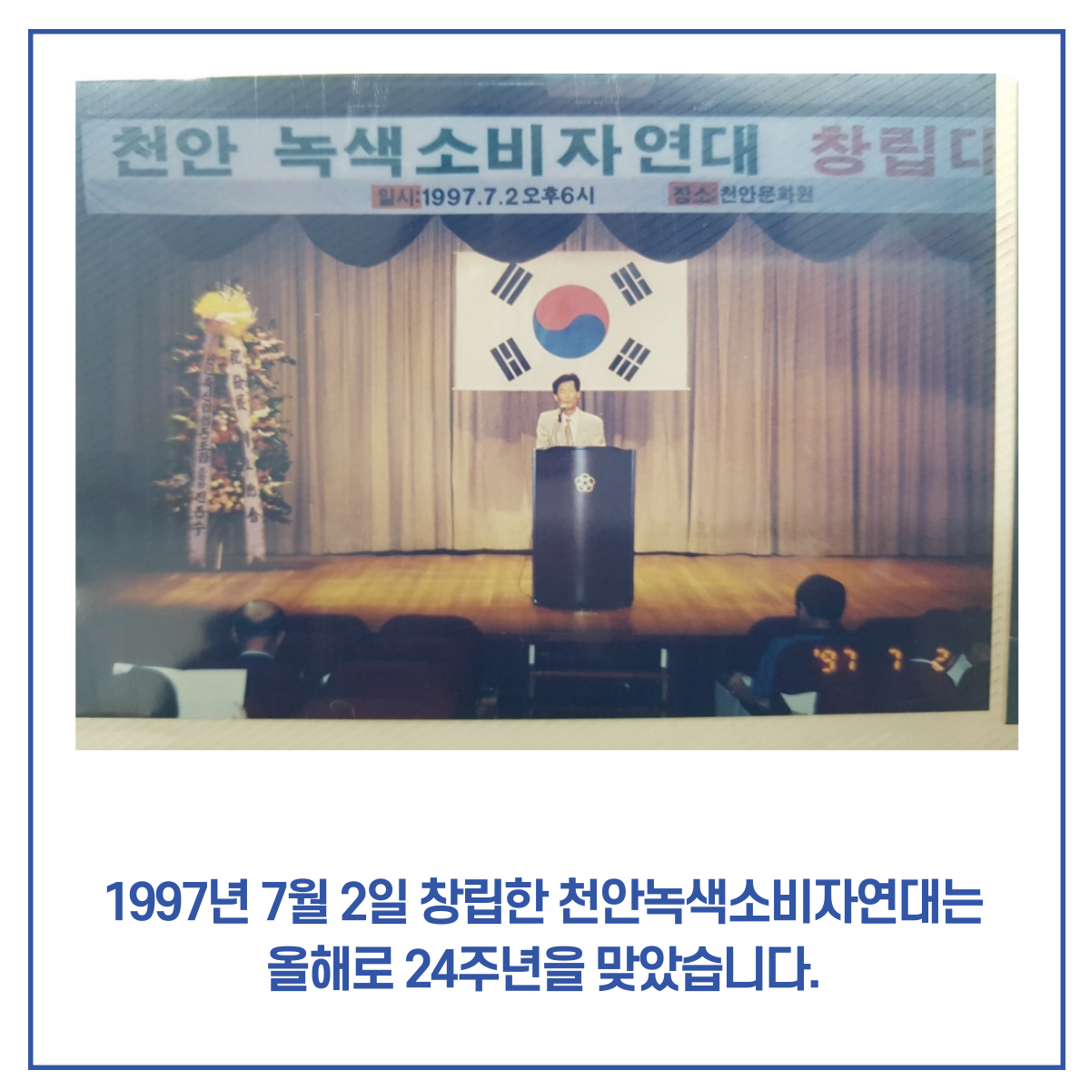 1997년 7월 2일 창립한 천안녹색소비자연대는 올해로 24주년을 맞았습니다.