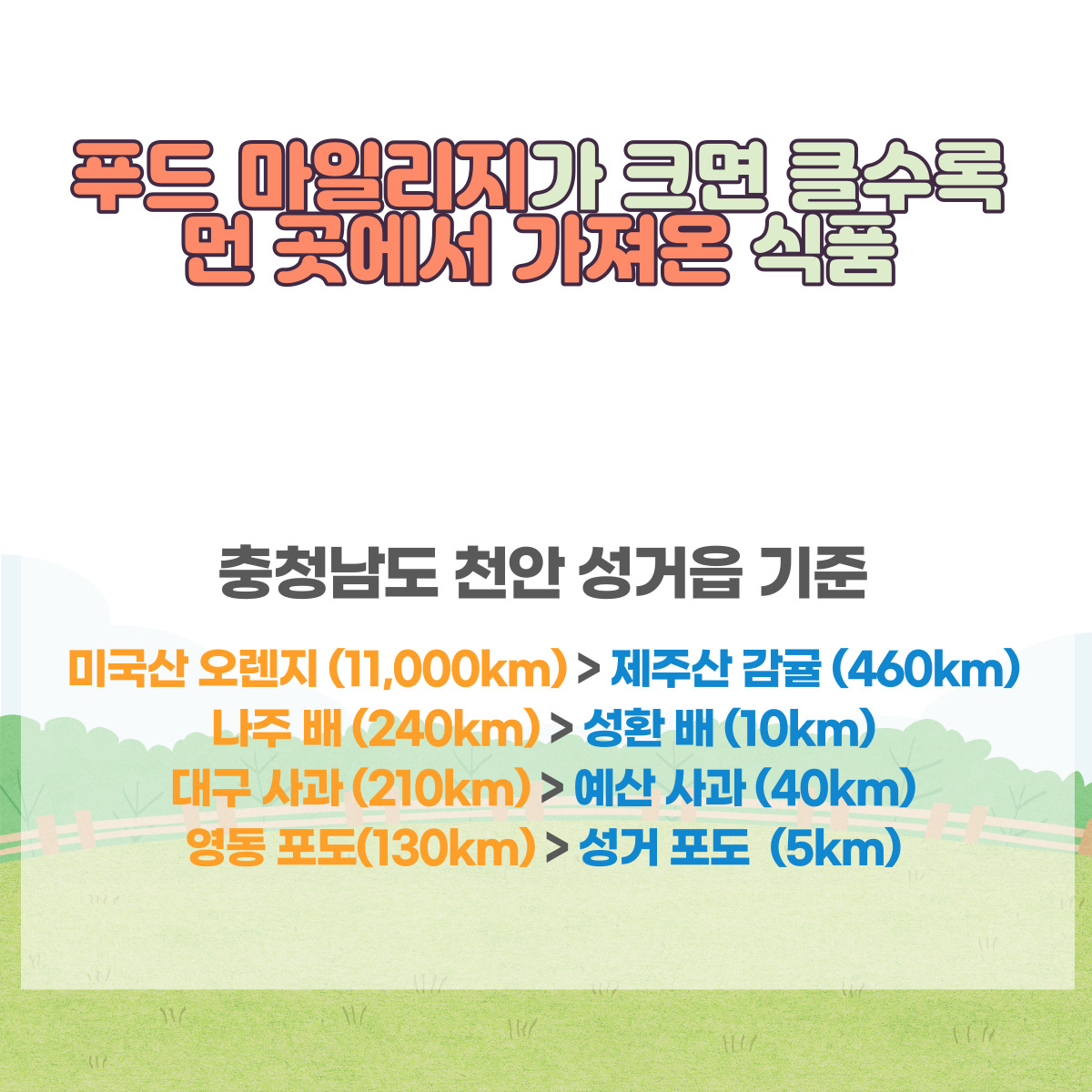 먹을거리가 생산자 손을 떠나 소비자 식탁에 오르기까지 이동거리