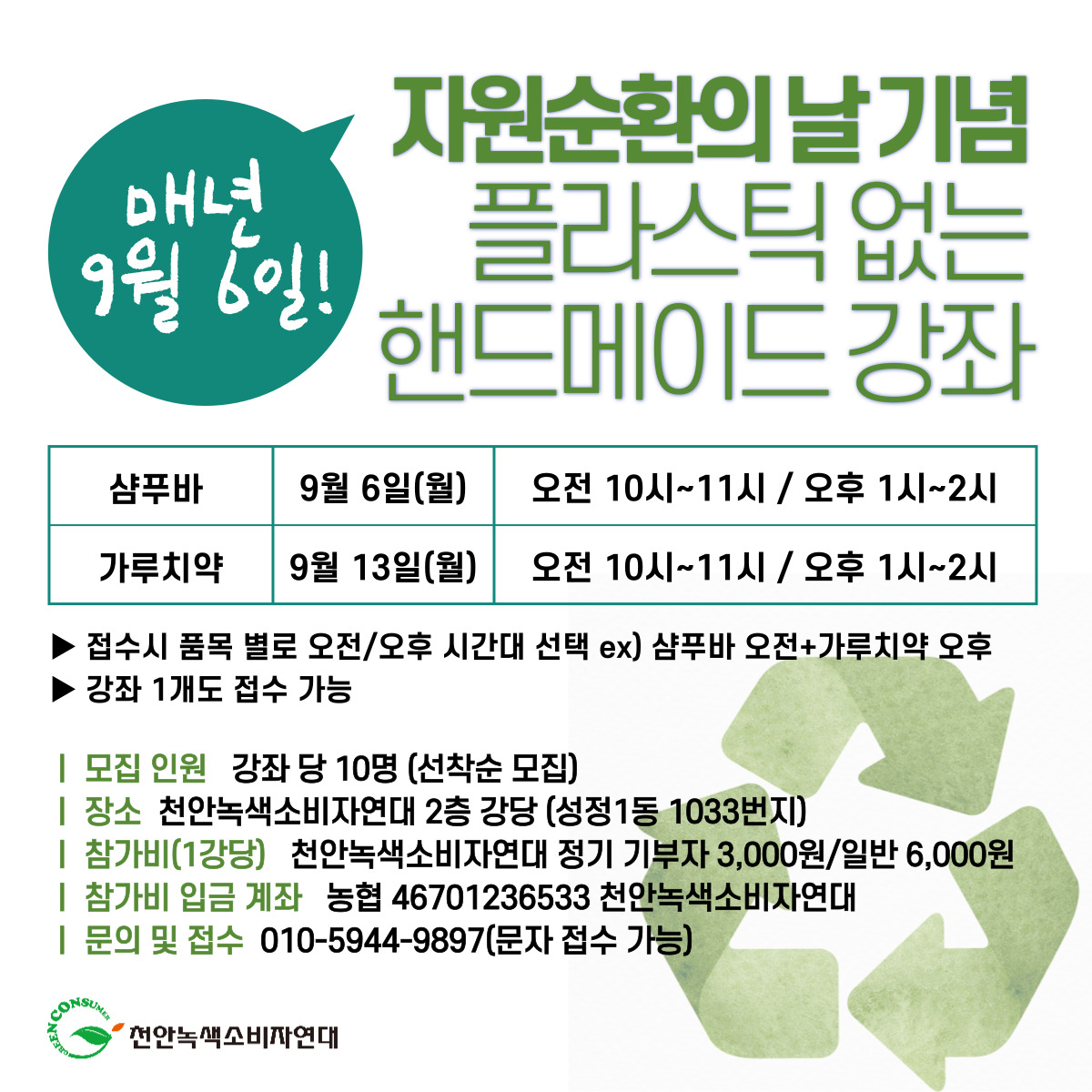 ※ 참가비(1강당) 천안녹색소비자연대 정기 기부자 3,000원/일반 6,000원