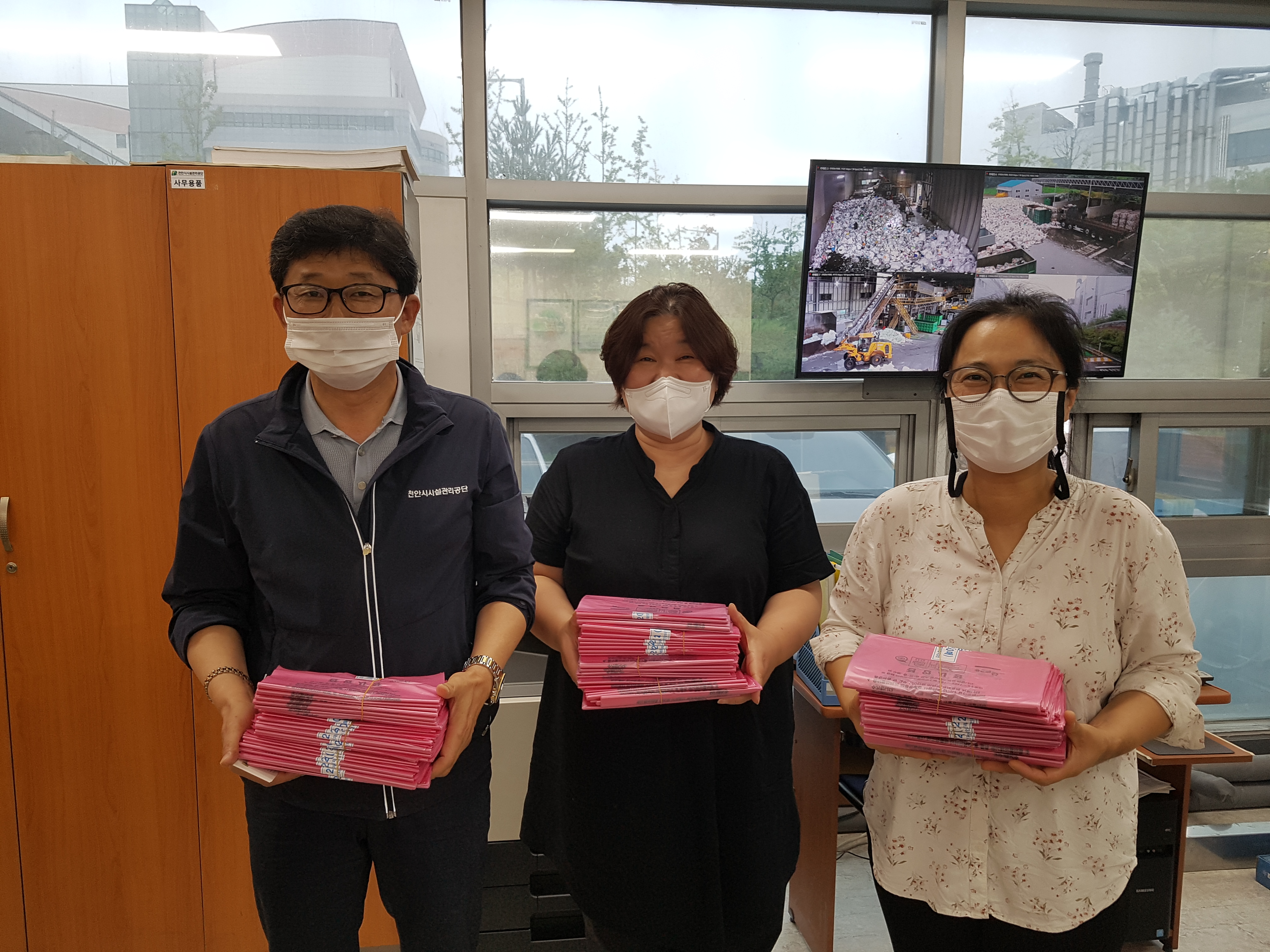 6월~8월 <지구와함께가게>를 통해 수거한 종이팩은 총 5,000매, 무게로는 190kg에 달합니다. 오늘 천안시재활용선별장에서 음식물 쓰레기 종량제 봉투 1,900매로 교환했습니다. 현장에서 바로 천안시주거복지종합지원센터 센터장님께 전달해드렸습니다. 여름 내내 함께 해주신 상점들, 수거자원봉사자님들, 관심으로 계속 지켜봐주신 모든 분들께 감사의 마음 전합니다.