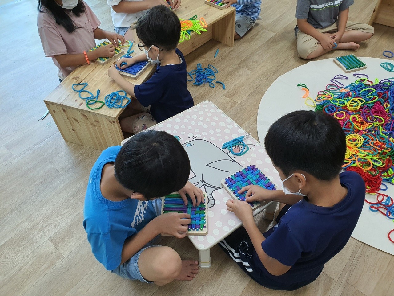 소중한방과후 친구들이 올 여름에 양말목을 활용한 ‘온종일 새활용 프로젝트’를 진행했습니다. 양말목(양말 생산 과정에서 버려지는 산업 폐기물의 한 종류. 양말 앞코 마감을 위해 잘려지는 가위밥)을 활용해 다양한 생활용품을 직접 만들어 판매했고 그 수익 금 중 일부를 천안녹색소비자연대에게 기부했습니다.