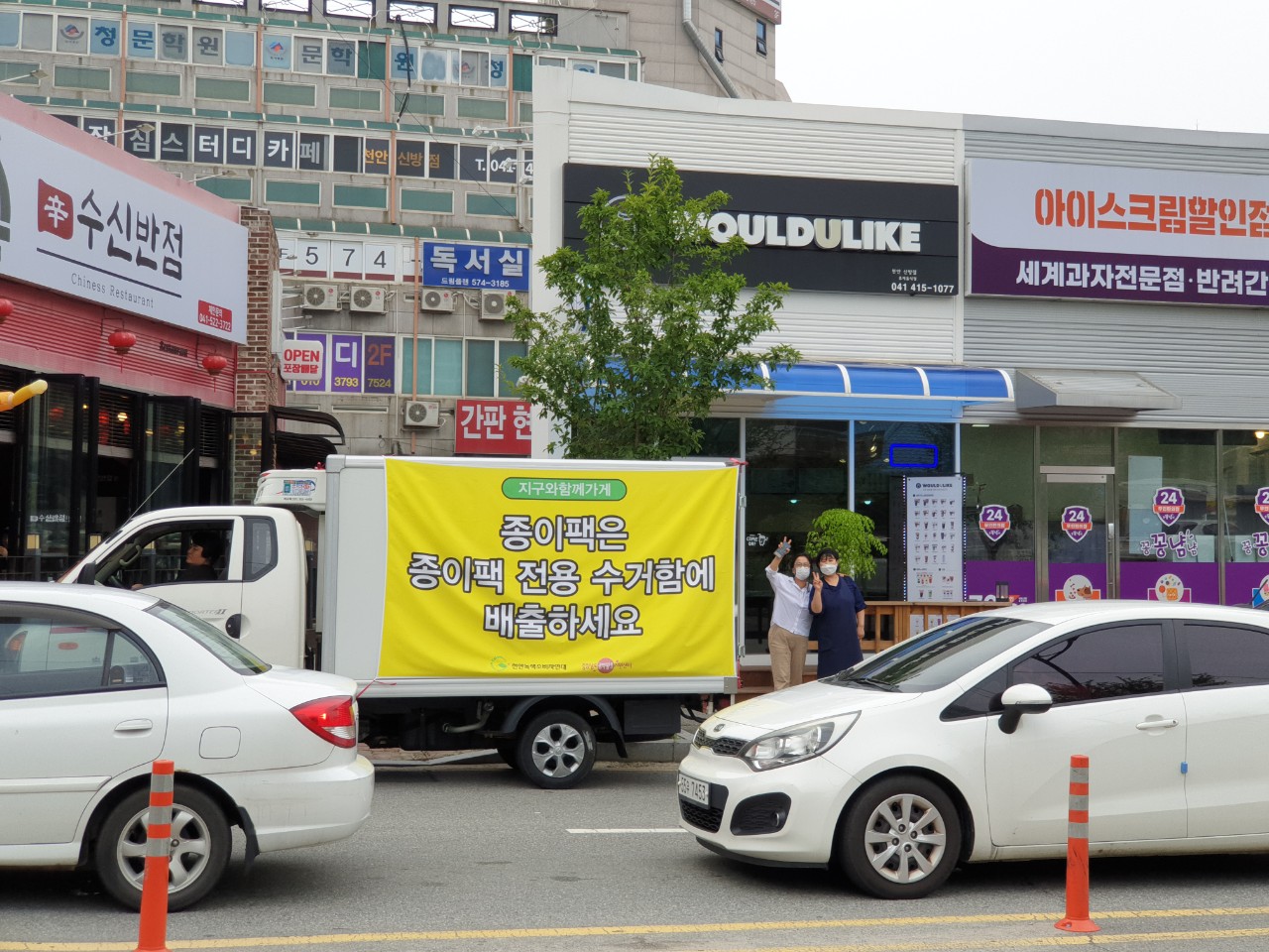 8월 28일 토요일 쌍용동, 신방동, 불당동 거리에서 <종이팩은 종이가 아니다> 슬로건을 내걸고 드라이브 캠페인 진행했습니다.