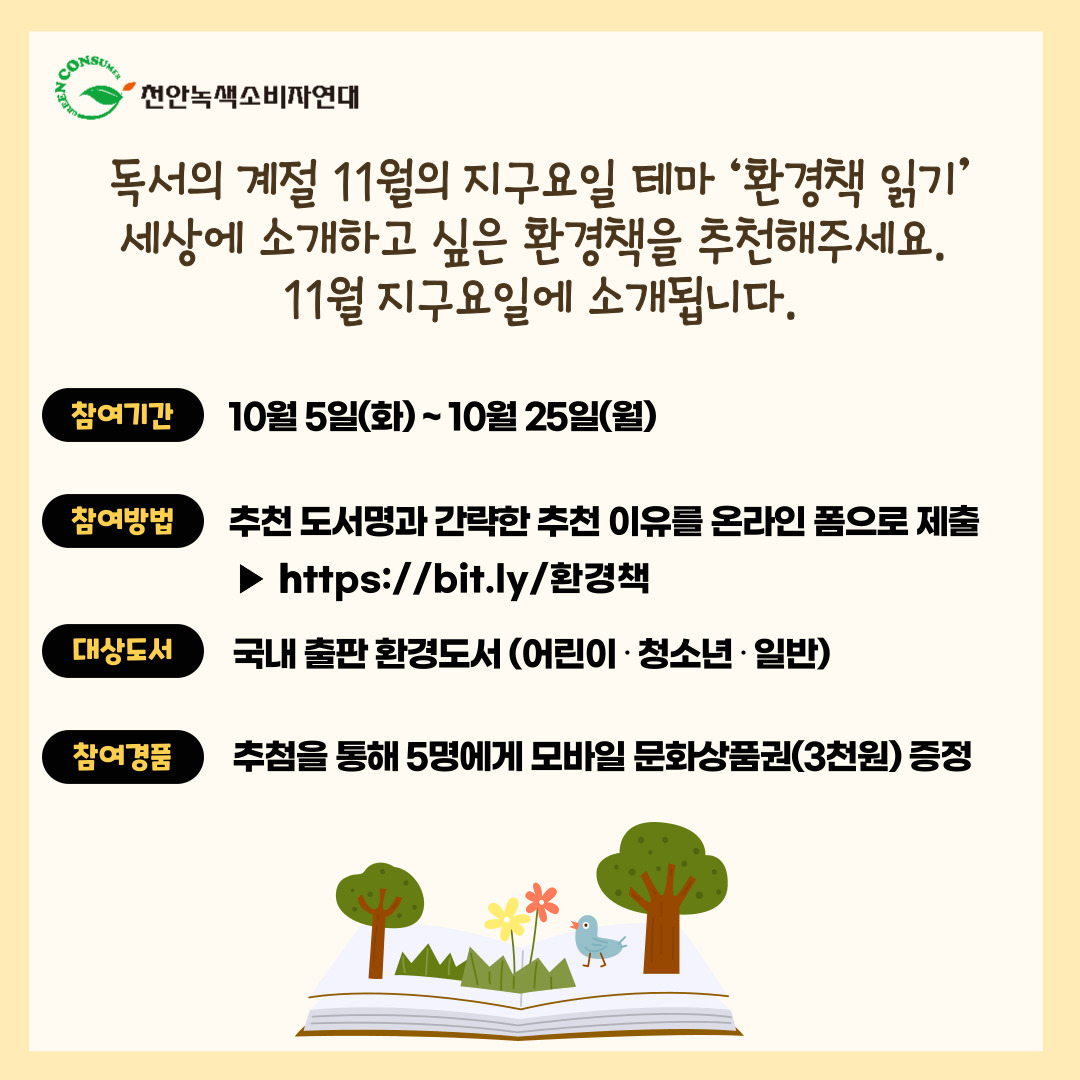 참여방법 : 추천 도서명과 간략한 추천 이유를 온라인 폼으로 제출 ▶ https://bit.ly/환경책