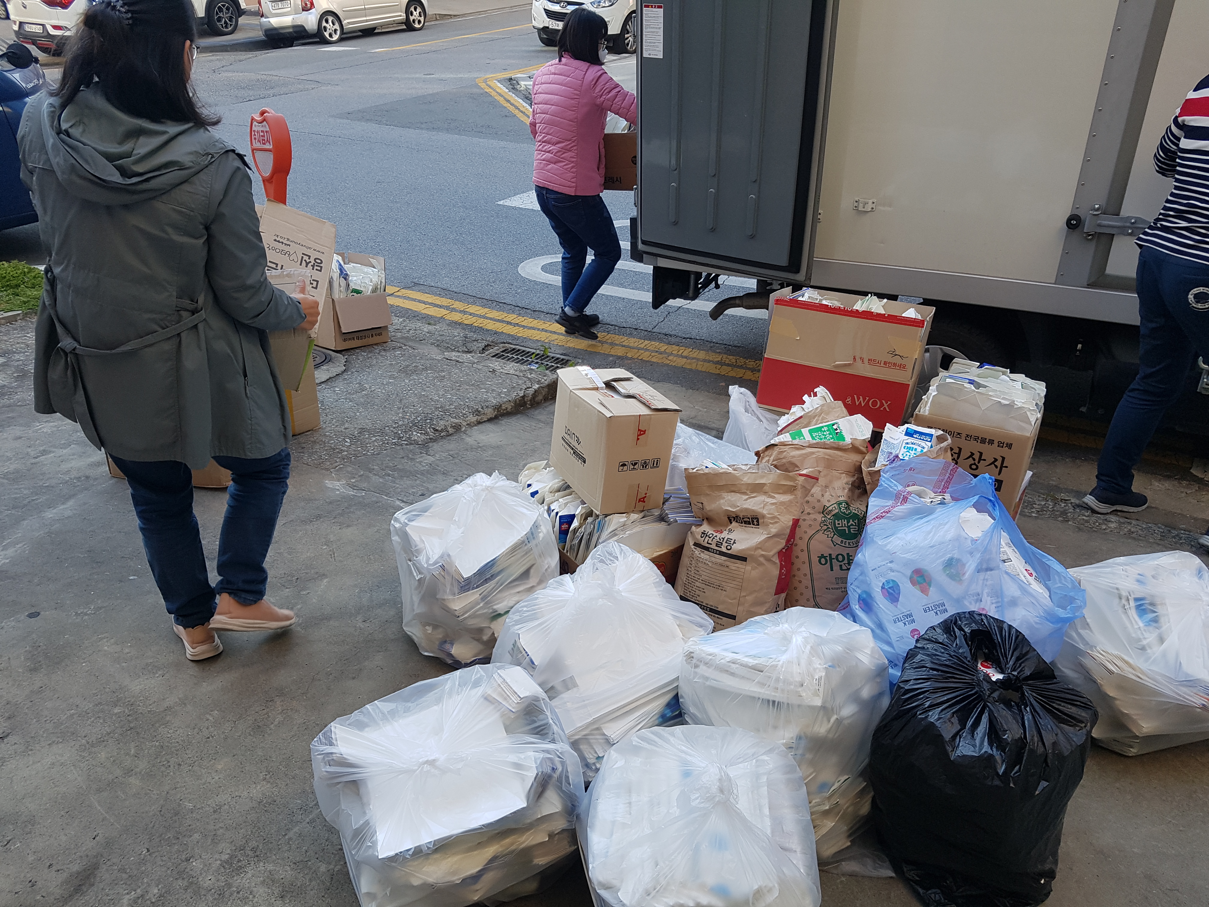 내일 올해 마지막 종이팩 교환을 하러 갑니다. 수거 자원봉사자님들과 함께 트럭에 싣기까지 완-료. 이번에는 7천여 장의 종이팩이 새생명을 얻으러 떠납니다.