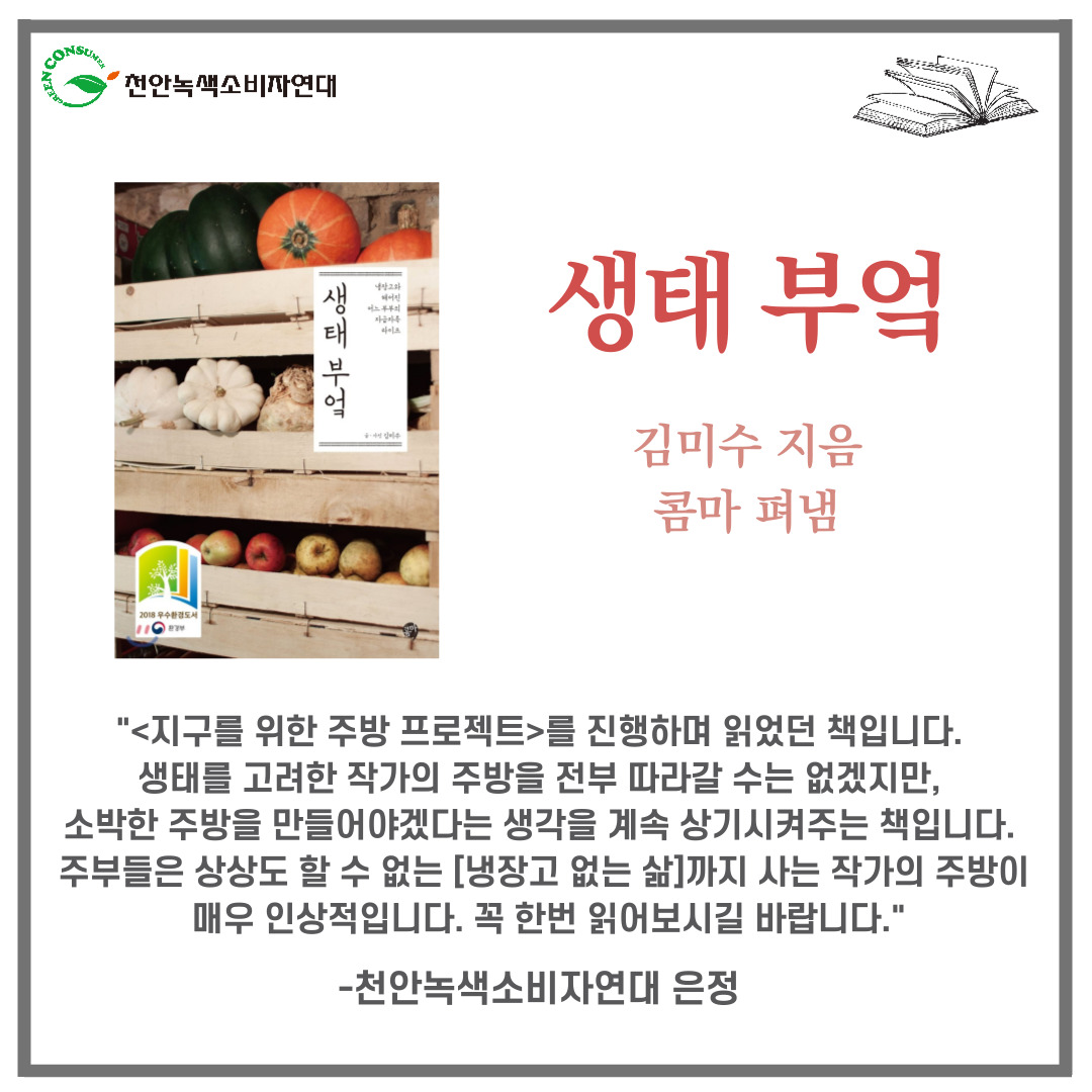 첫 번째 주에는 ‘천안녹색소비자연대 활동가들의 추천도서’를 소개합니다.