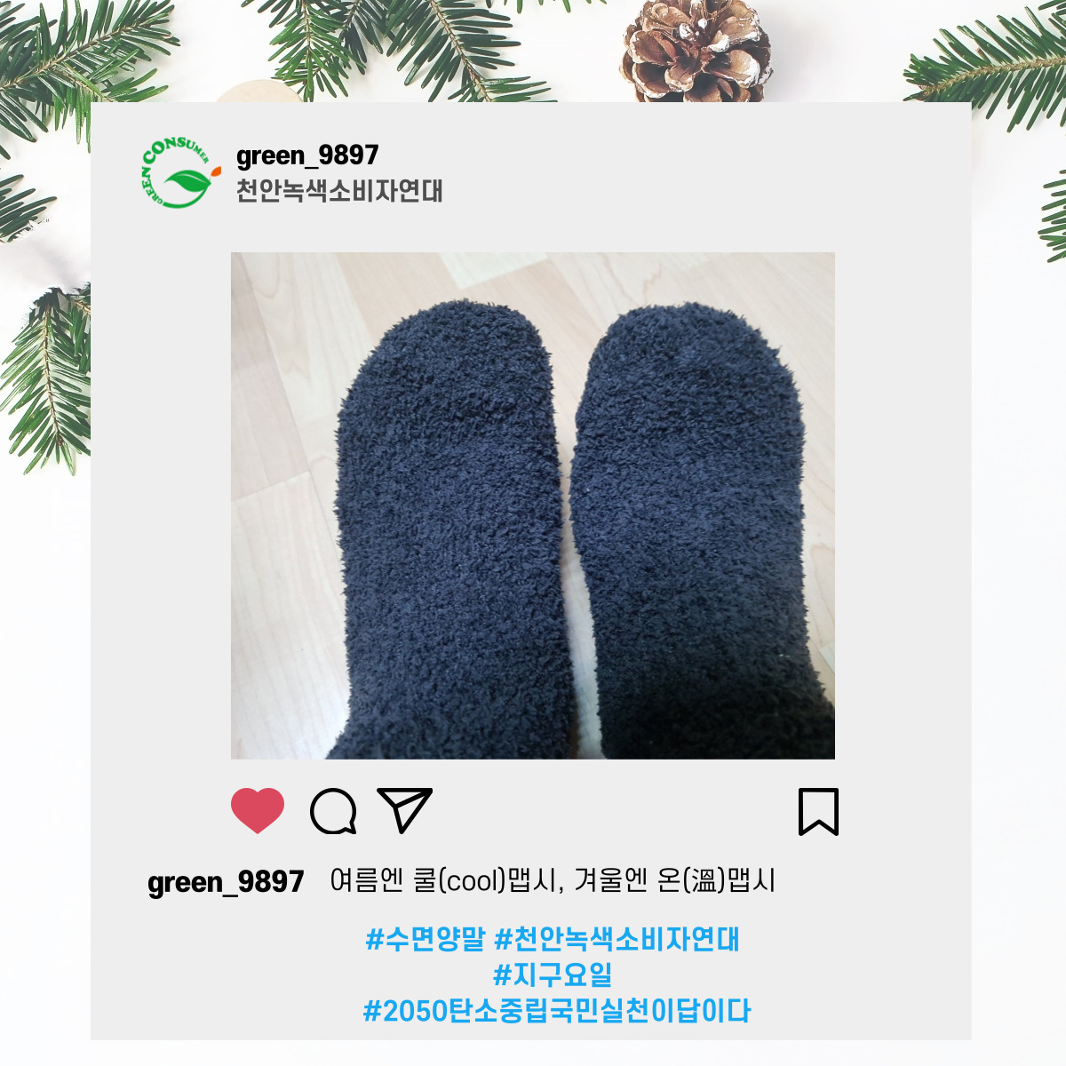 지구요일 캠페인의 마지막 달이 시작되었습니다. 올해 달력의 마지막 장은 ‘온맵시 캠페인’으로 채워봅니다. '온맵시'는 편안하고 따뜻한 옷차림을 통해 겨울철 체감온도를 높이는 실천입니다.
