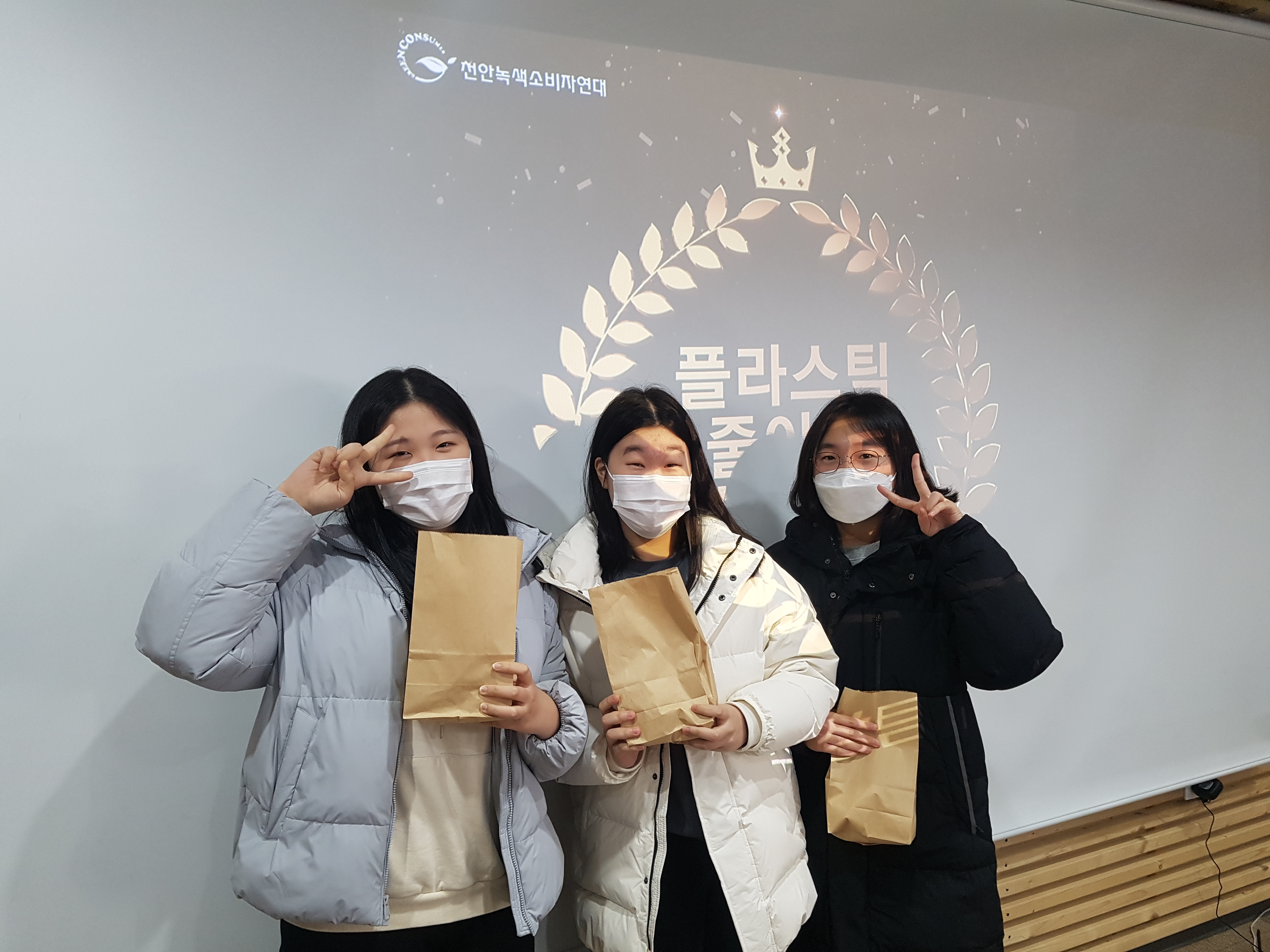 1위는 ‘푸른단’팀의 ‘플라스틱 줄이면 판타스틱’입니다. 40%라는 압도적인 득표율로 최종 슬로건으로 선정되었습니다. 11월 27일 진행된 활동 공유회에서 우승팀에게 제로웨이스트 제품 키트를 시상했습니다.