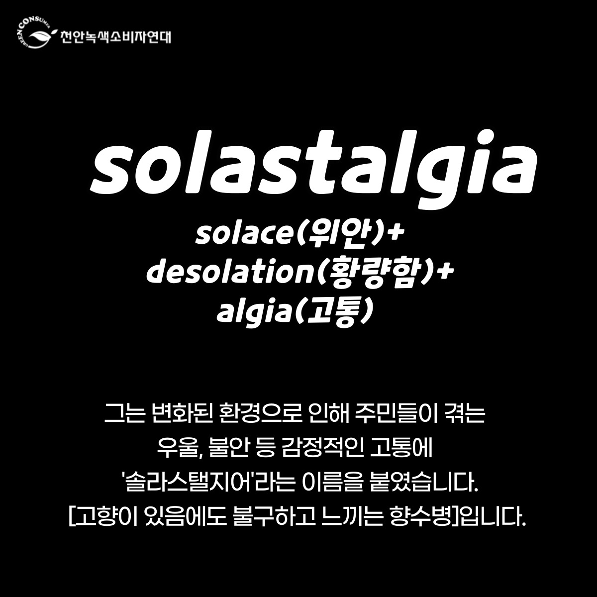 지구에 살면서도 지구가 그리운 사람들이 겪는 고통. ‘솔라스탤지어’를 겪고 계시군요. 참여와 연대로 슬픔을 이겨낼 수 있습니다.