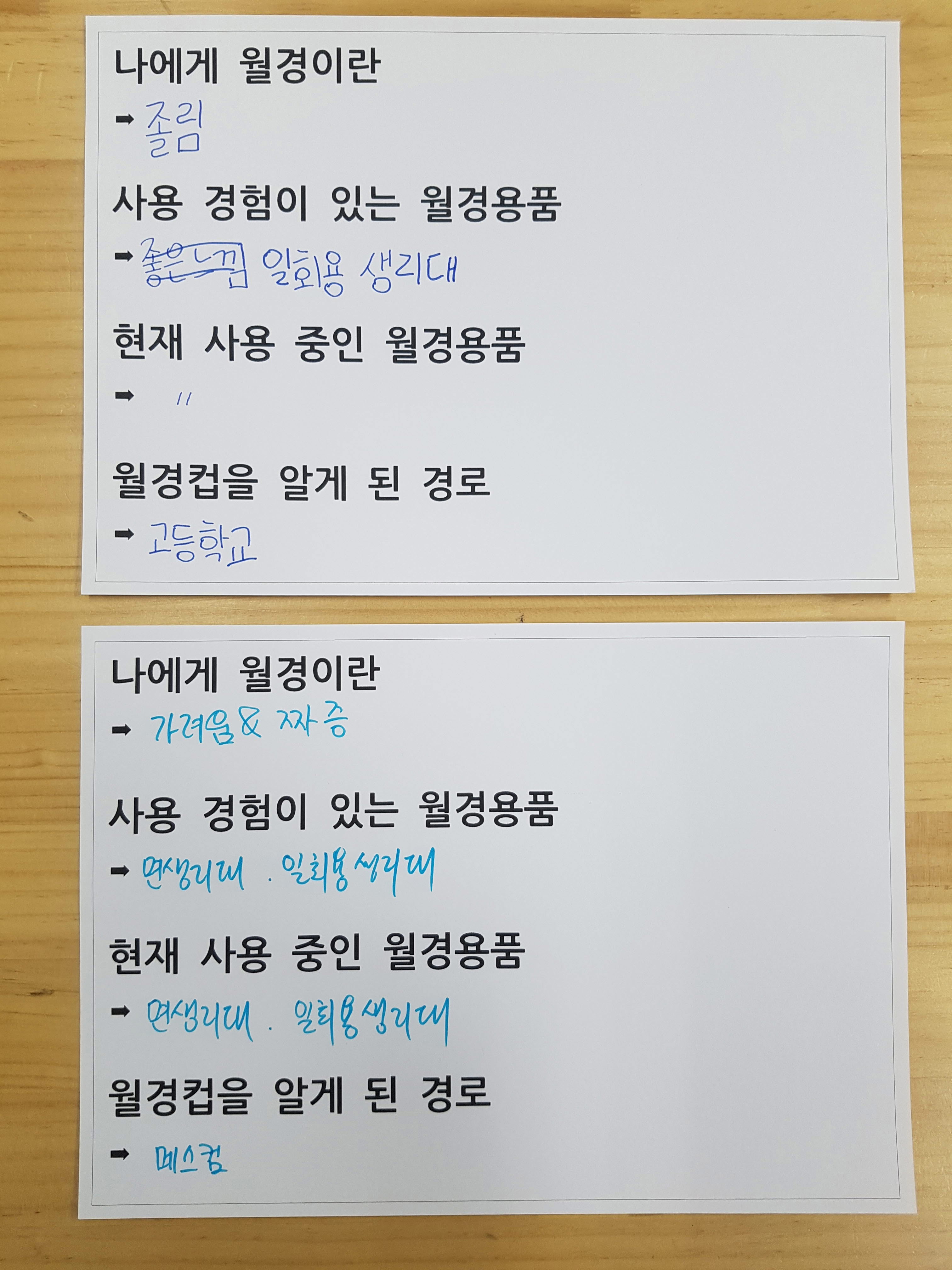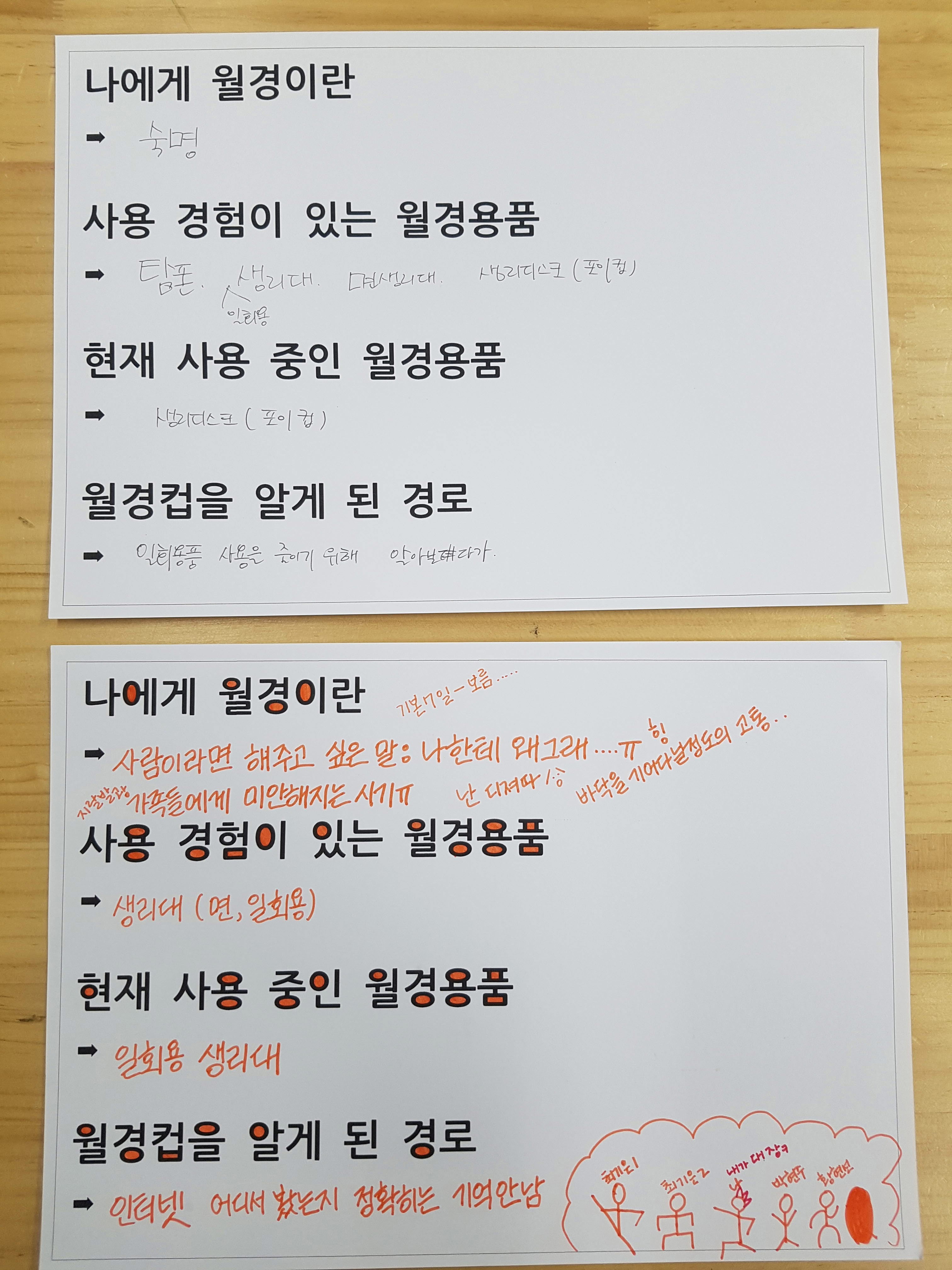 한국 최초로 일회용 패드형 생리대를 만든 회사는 자사 제품이 여성들을 ‘해방’시켜준다고 광고했습니다. 하지만 진정한 해방은 ‘선택권이 있다는 것’입니다. 월경을 겪는 여성들에게는 월경용품에 있어 더 많은 선택권이 주어져야 합니다. 그리고 월경컵은 이제 막 그 선택권의 카테고리 안에 들어왔습니다. 더 많은 여성들이 월경컵을 접하도록, 소녀들이 일회용 생리대가 아닌 다른 월경용품도 있다는 것을 알도록, 월경이 감춰지지 않도록. 앞으로도 지역에서 다양한 월경 운동을 펼쳐나가겠습니다.