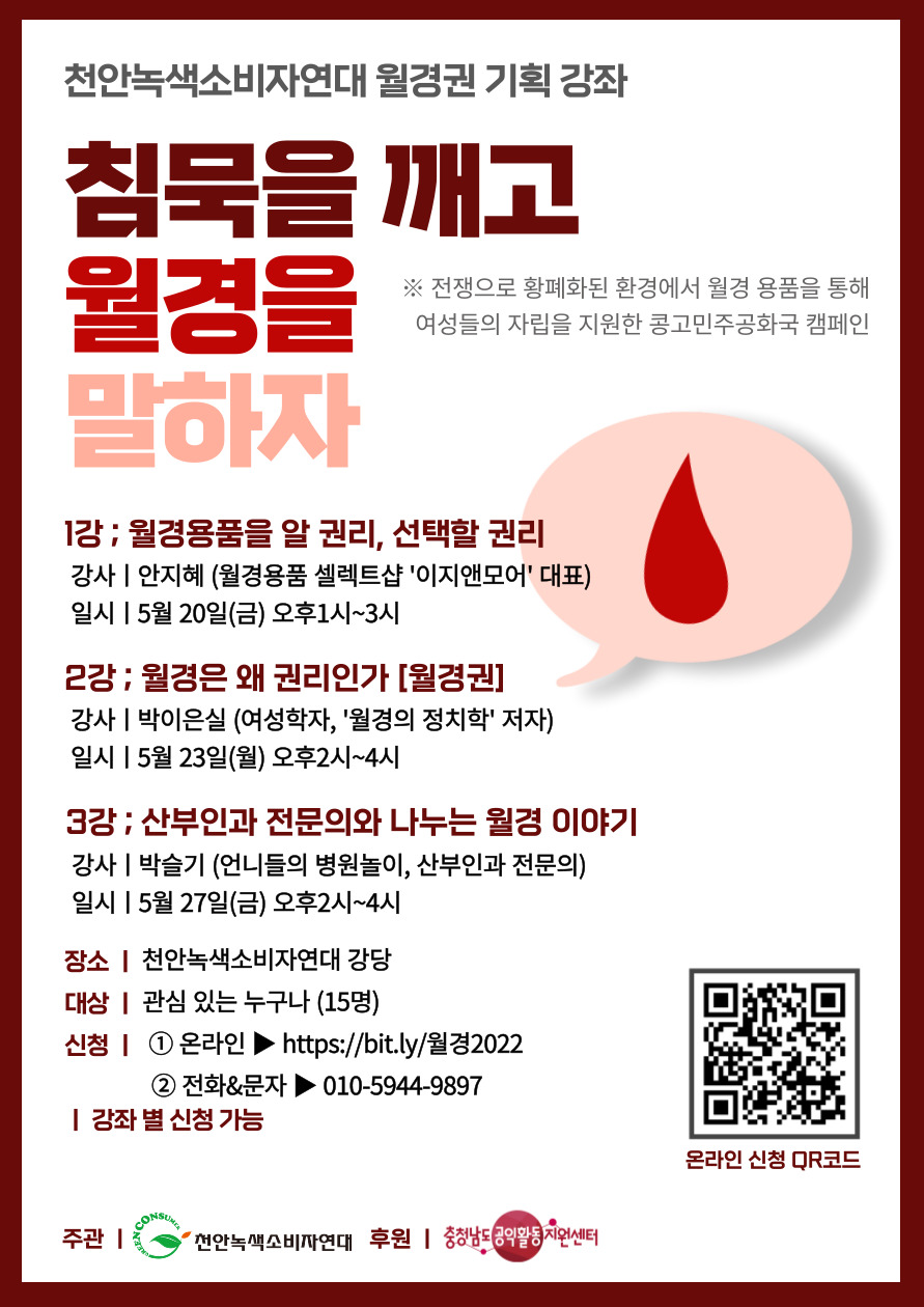 | [월경권 기획 강좌 1] 월경용품 알 권리 선택할 권리 (0) | 2022.05.20 |