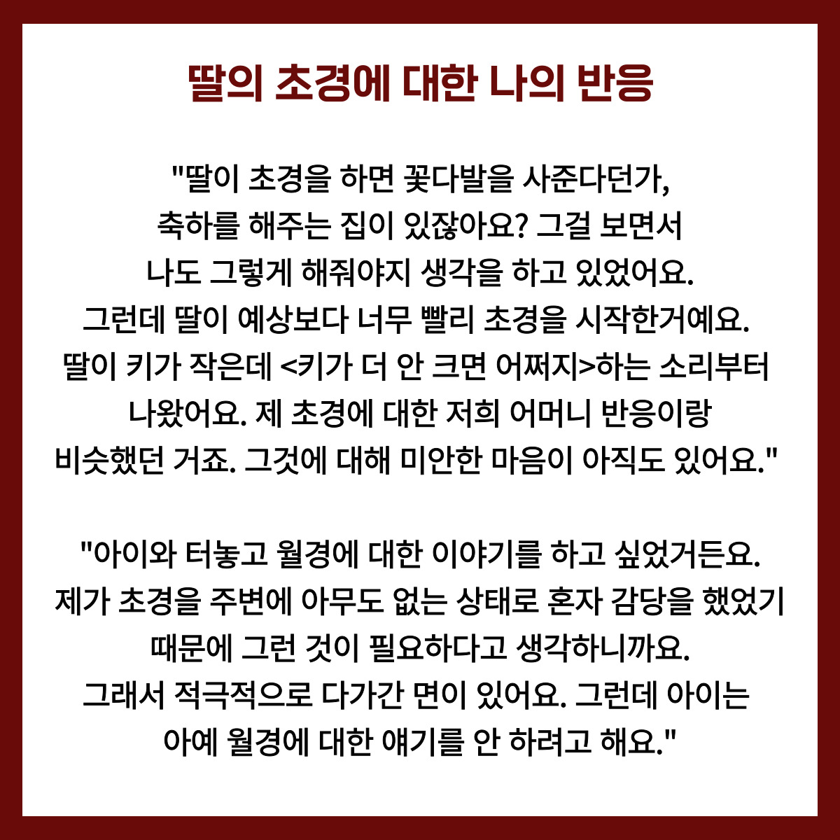 <월경에 대하여> 연속 인터뷰 vol.1 초경을 맞은 아이의 엄마