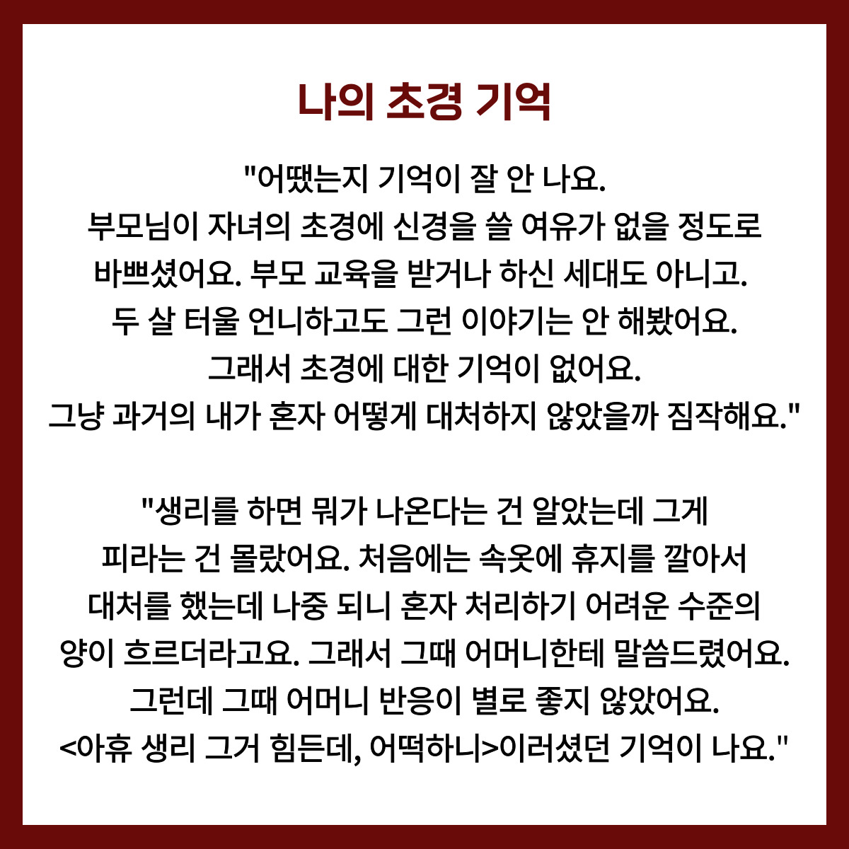 | <월경에 대하여> 연속 인터뷰 vol.2 귀화 여성 (0) | 2022.07.18 |