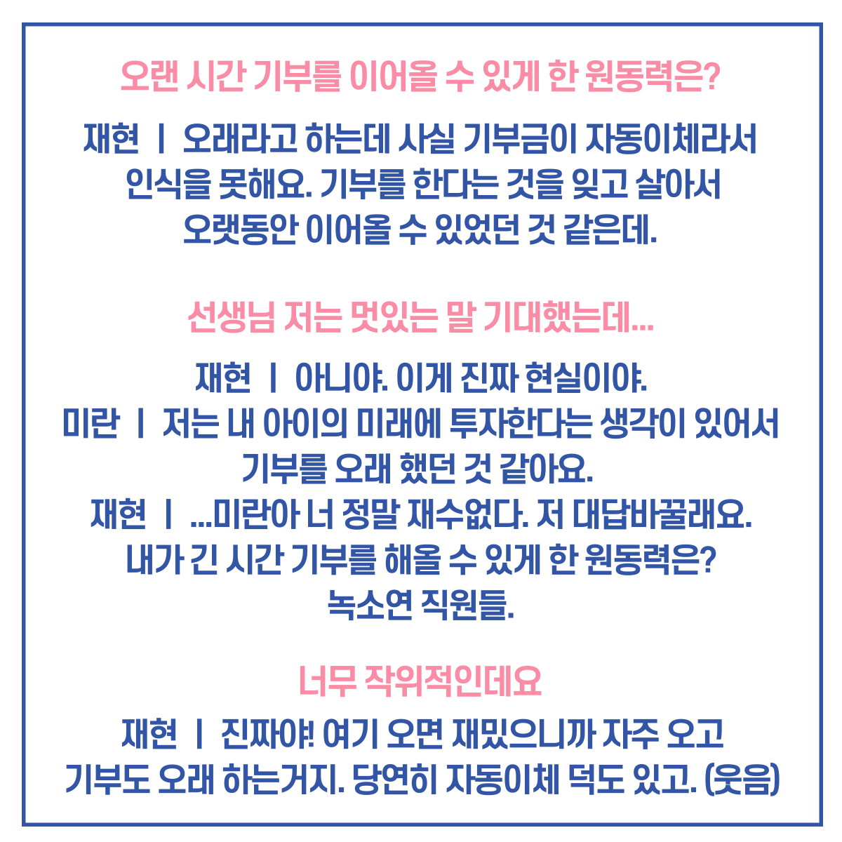 창립 25주년 기념 기부자 릴레이 인터뷰 vol.1