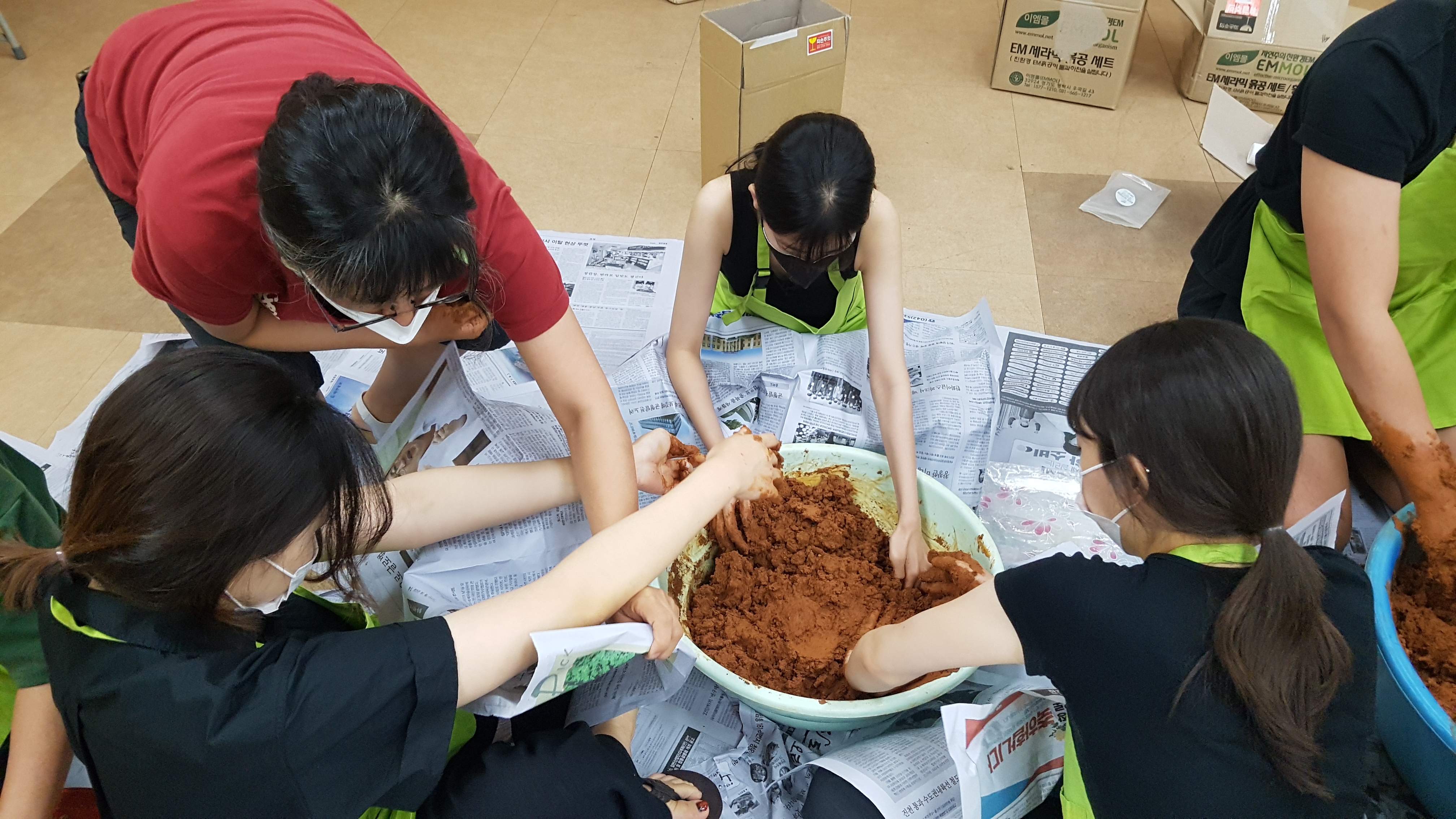 대학생들과 EM흙공 만들었습니다. 8월 초 하천 정화 캠페인에 사용할 예정인데 곰팡이가 잘 피기를