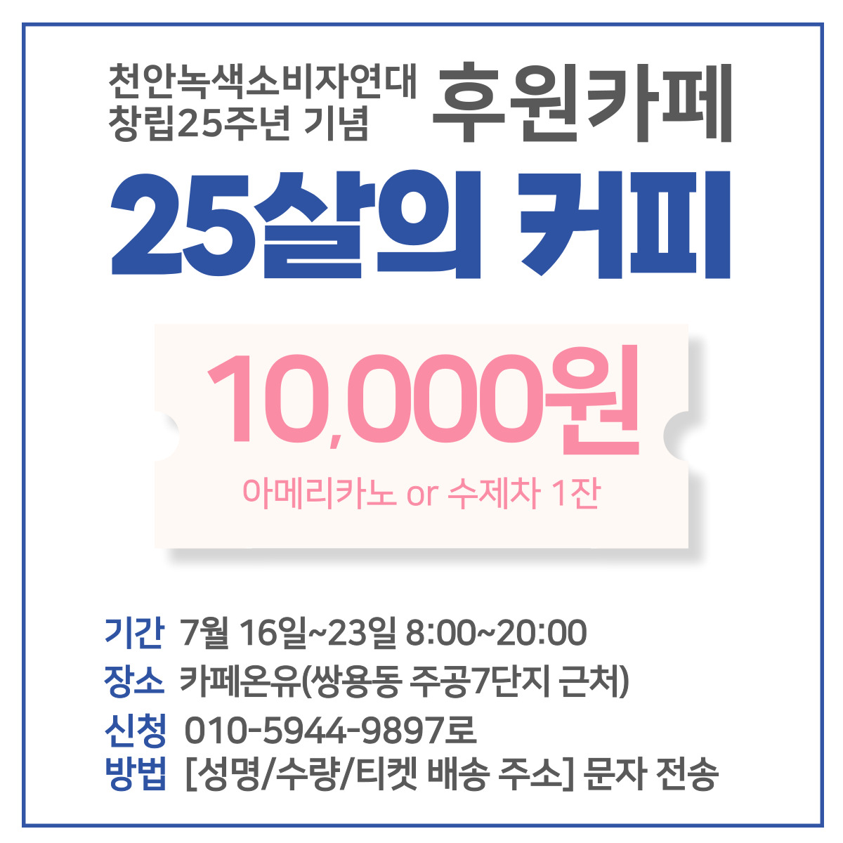 | 창립25주년 기념 후원카페 참여 이벤트 vol.1 (0) | 2022.07.08 |