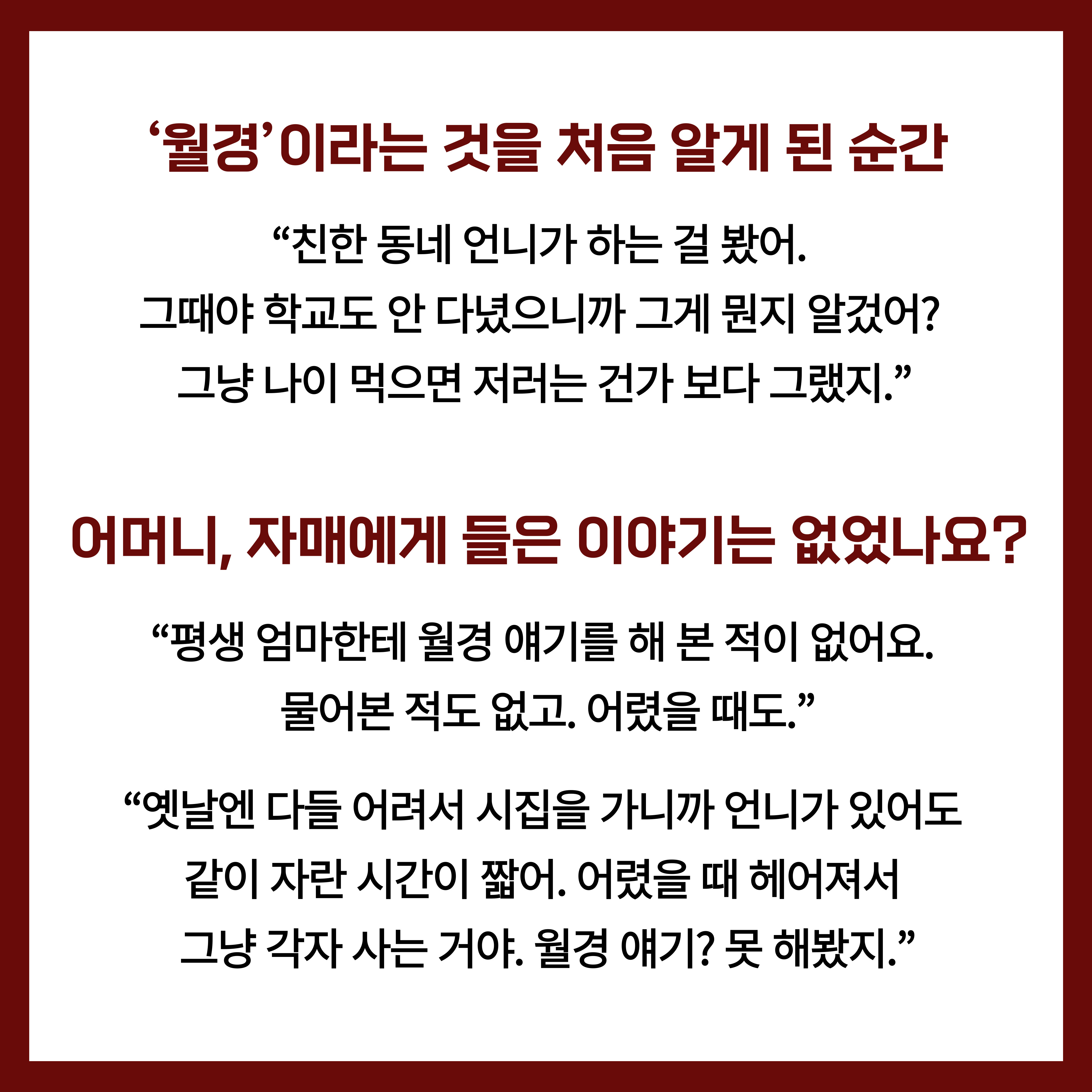 | <월경에 대하여> 연속 인터뷰 vol.7 여성 청소년 (0) | 2022.09.14 |