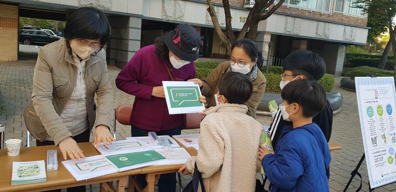 유통기한의 경우 제품의 제조일로부터 소비자에게 유통 판매가 허용되는 기한이라면 소비기한은 표시된 보관 조건을 준수할 경우 식품 섭취가 가능한 기한으로 먹을 수 있는 기한이 늘어나게 됩니다. 그리고 식품용 기구 구분 표시제도에 대해서도 설명해 드렸습니다. 판넬의 설명을 보고 퀴즈를 풀면 치약+칫솔 세트도 드렸더니 어린이부터 어른들까지 모두 재미있게 참여하였습니다.