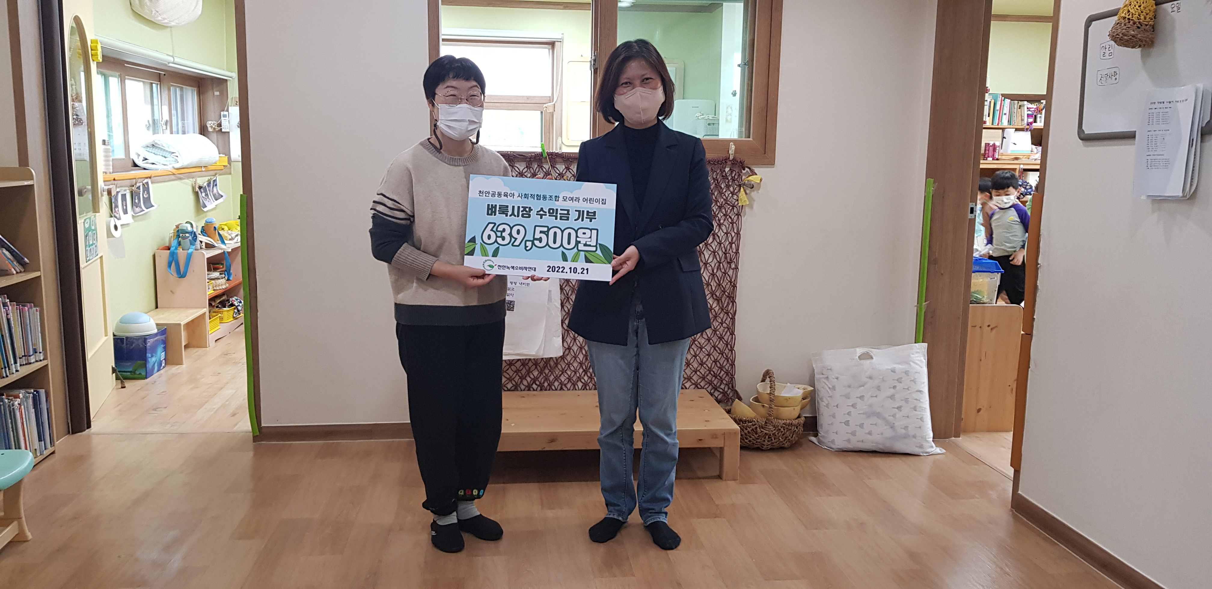 참으로 소중한 마음을 받았습니다. 저희 단체와 꾸준히 활동을 함께 하고 있는 모여라 어린이집에서 벼룩시장 수익금 전액을 기부해주셨습니다. 모여라 친구들 모두에게 기부증서와 함께 감사의 마음을 전했습니다. 모여라 친구들의 산책길이 내내 아름다울 수 있도록 앞으로도 열심히 활동하겠습니다.