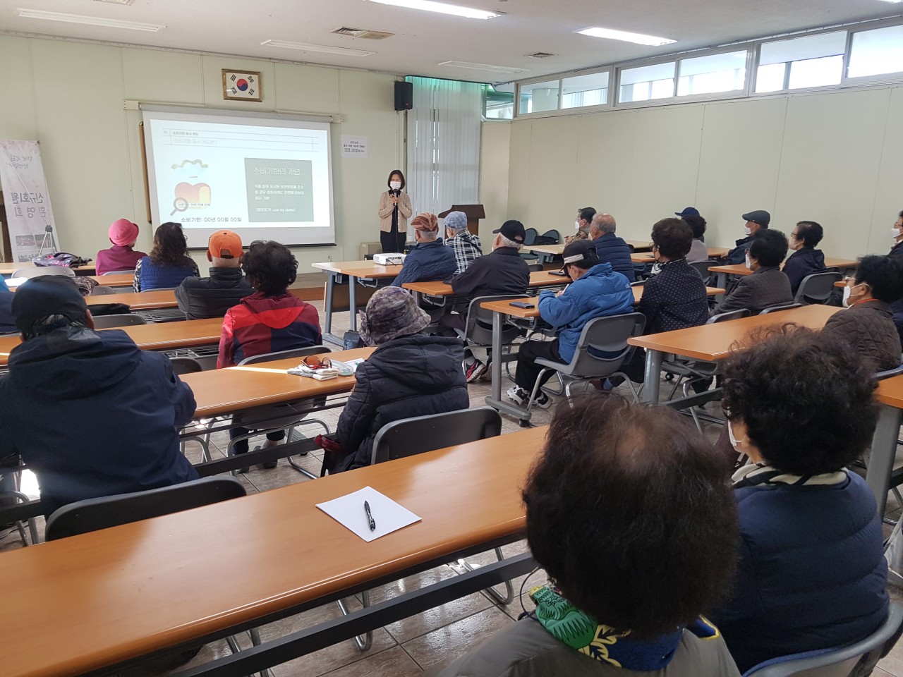 천안시노인종합복지관 어르신들을 모시고 소비기한 표시제에 대한 교육을 진행하였습니다.