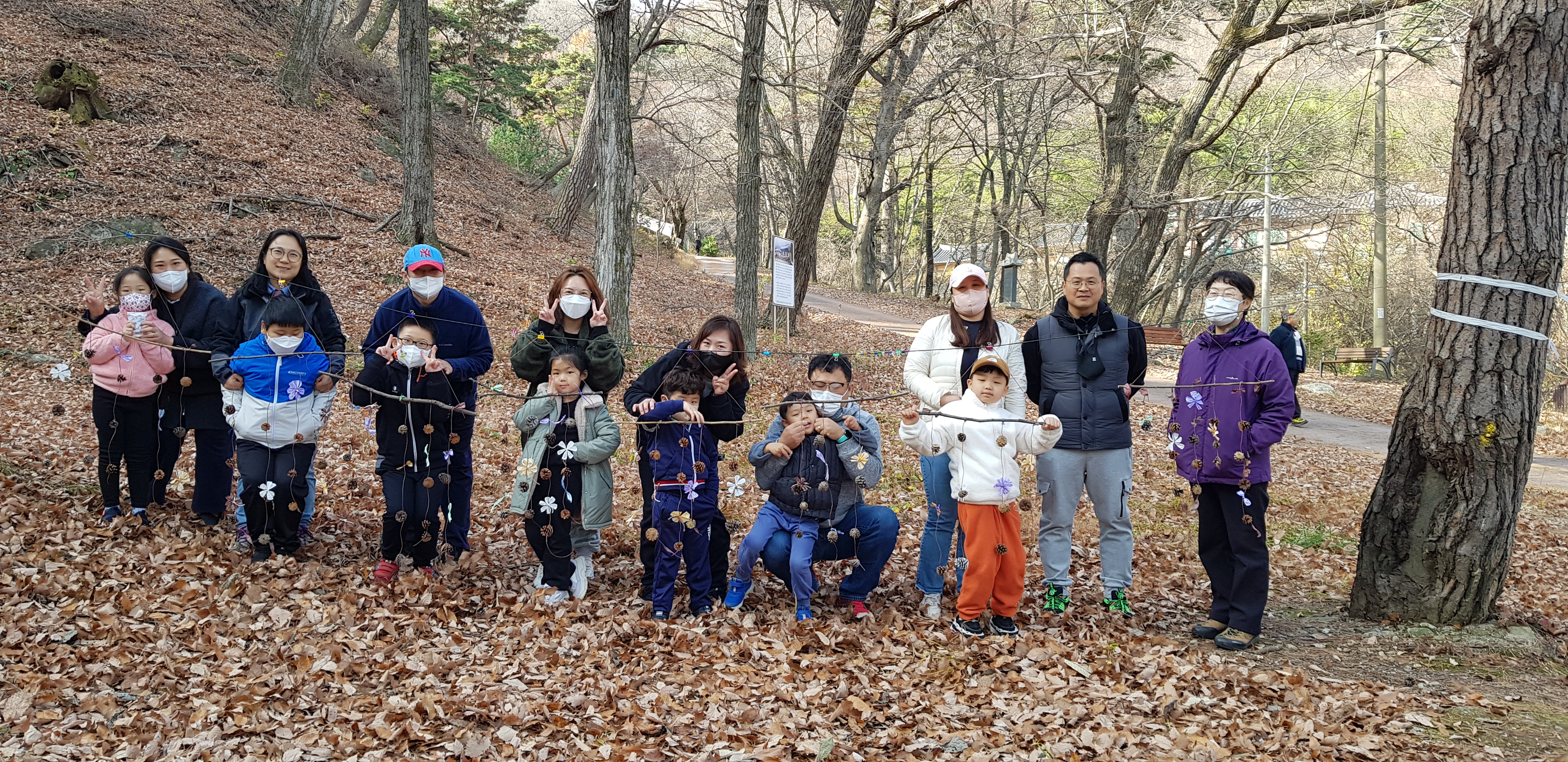 어린이 숲체험 프로그램 <초록은 동색> 올해 마지막 나들이를 아산 봉곡사로 다녀왔습니다. 마지막 시간이라 특별히 보호자님들도 동행했습니다. 늦가을 숲의 정취를 느끼며 솔방울로 크리스마스 모빌도 만들고 멋진 나무와 사진도 찍었습니다.