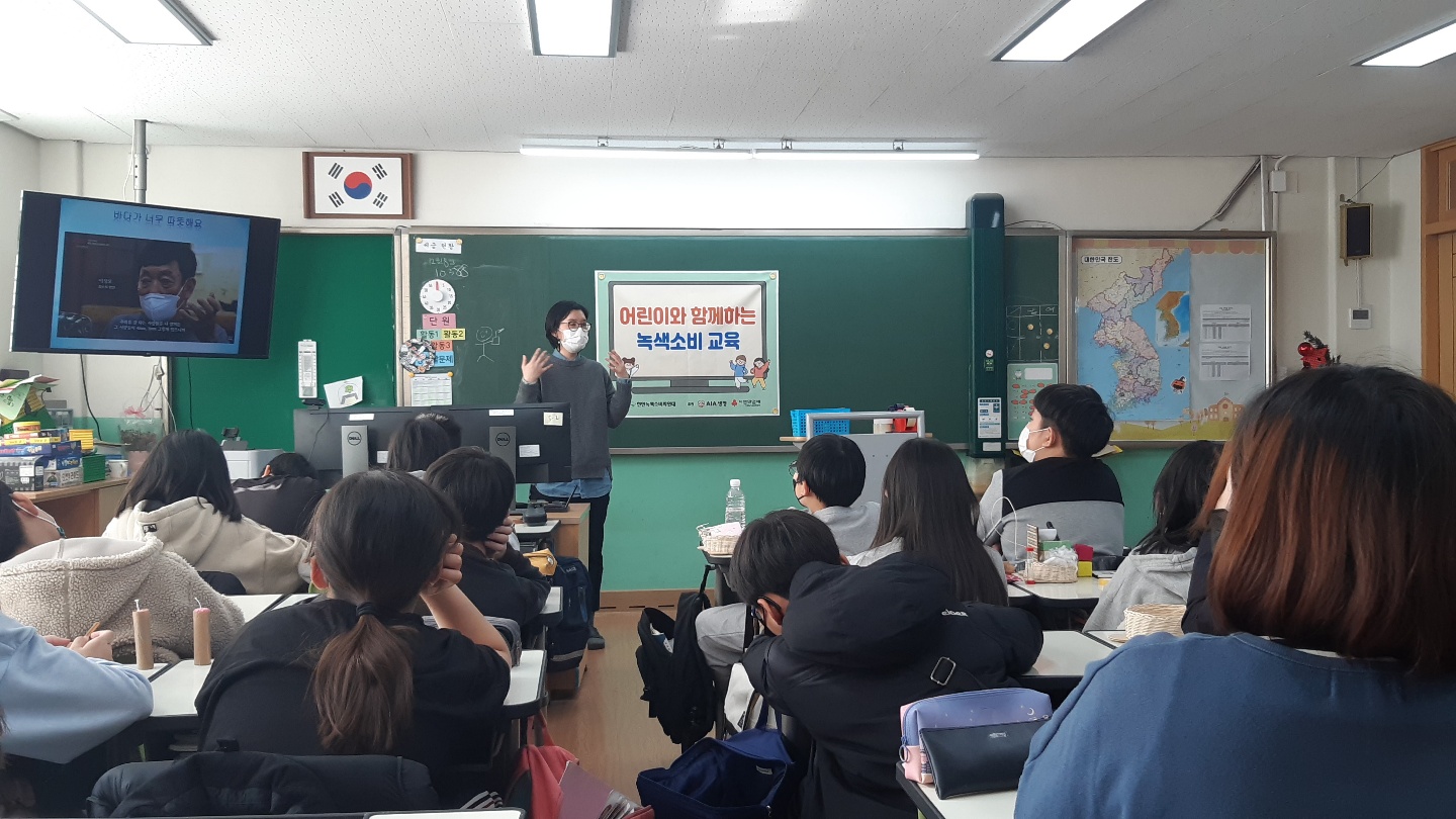 봉서초등학교 5학년 2반 친구들과 함께 기후위기 시대, 어린이와 함께 하는 녹색소비 교육을 진행하였습니다. 5교시에는 쓰레기를 중심으로 녹색소비 실천하기, 6교시는 기후위기를 중심으로 에너지 교육을 진행하였습니다.