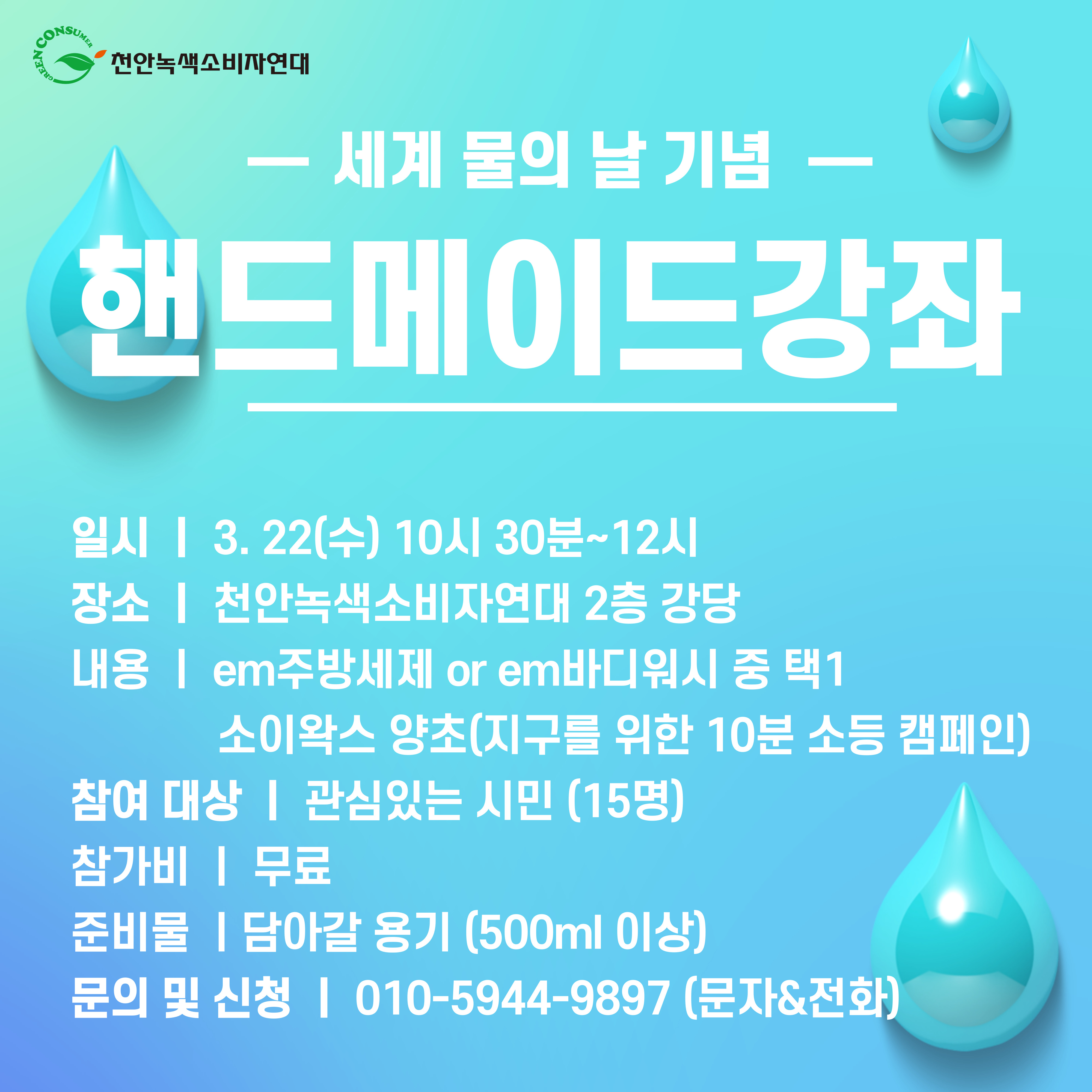 | 세계 물의 날 기념 핸드메이드 강좌 진행 (0) | 2023.03.22 |