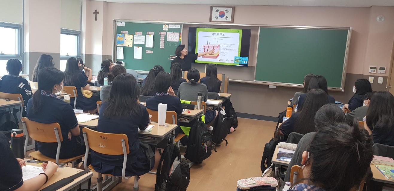 천안복자여자중학교 3학년 난초반, 매화반, 국화반 청소년들을 대상으로 화장품 안전교육을 진행하였습니다.