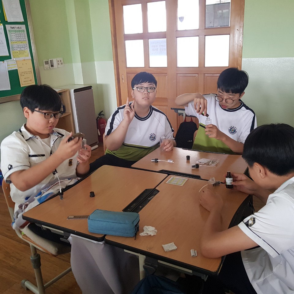 솔나리 김민하 선생님께서 설화중학교 친구들과 함께 모기퇴치 스프레이 만들기 교육 진행해주셨습니다.