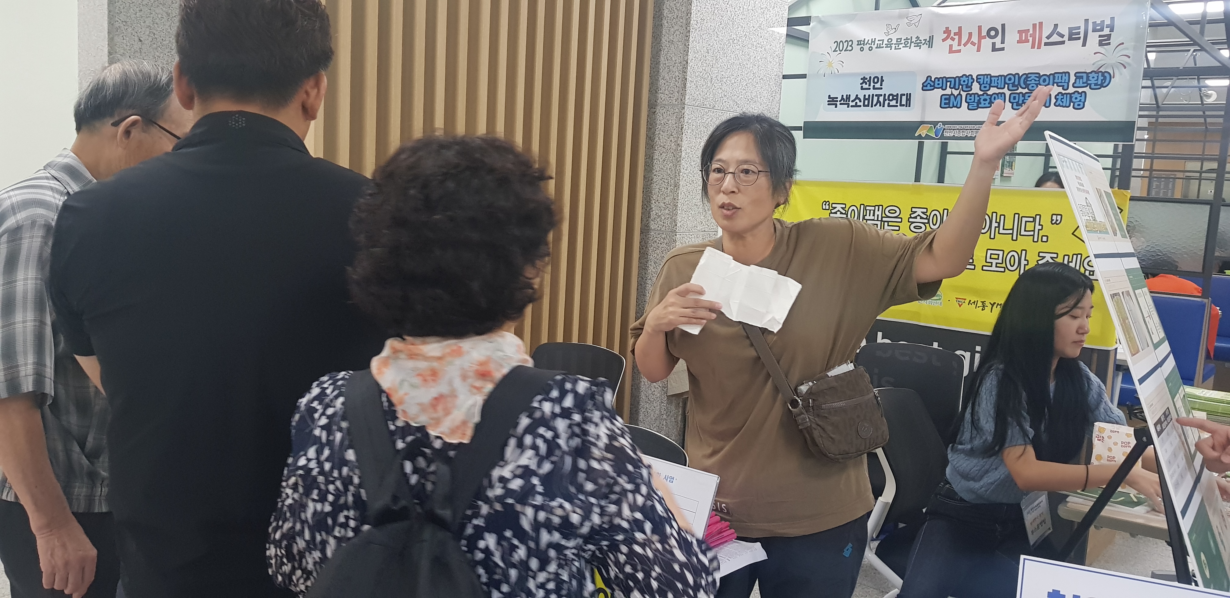 9.23 천안시종합사회복지관에서 종이팩은 종이가 아니다 교환 캠페인을 진행했습니다. 행정복지센터에서 종이팩을 음식물종량제봉투로 교환해주는 제도가 있습니다. 천안시종이팩 교환제도 안내도 하고