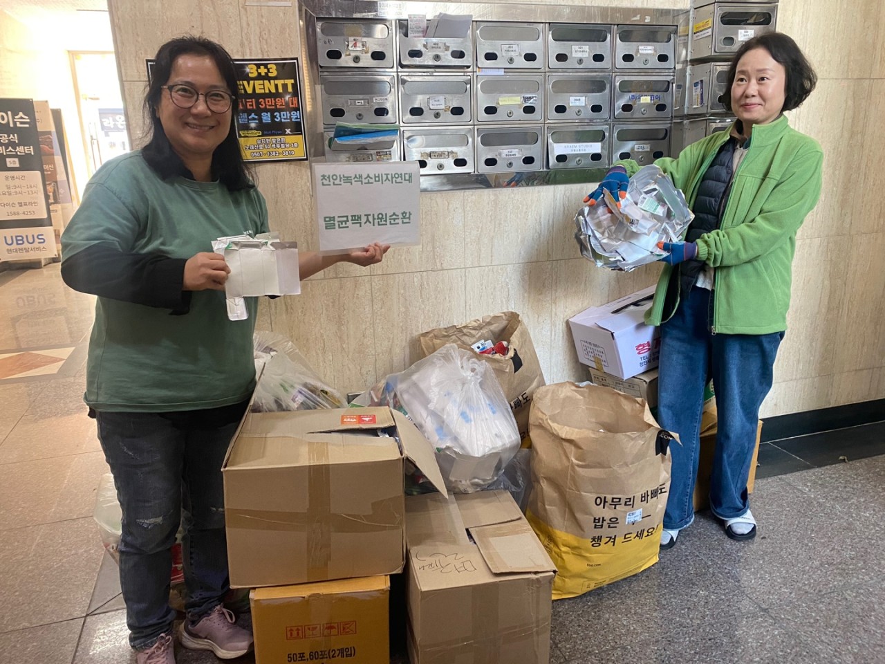 올해 세 번째 종이팩 교환이 있었습니다. 천안시시설관리공단에서 교환한 멸균팩은 총 320kg으로 두루마리 화장지 640개를 만들 수 있는 양이고 천안아산한살림에 전달한 멸균팩은 47.3kg입니다. 종이팩 수거에 함께 해주시는 모든 분들 감사합니다.