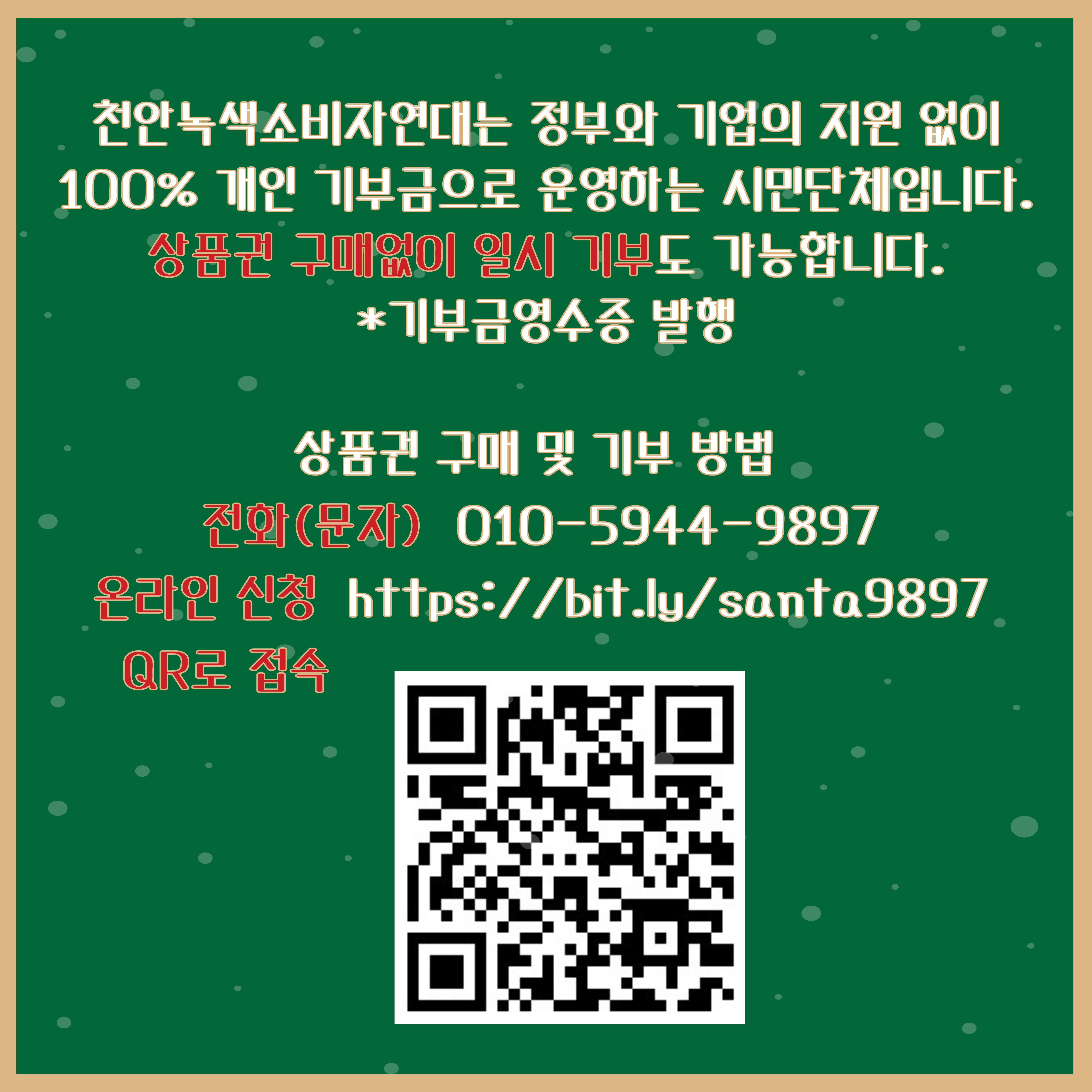2023년 한 해 동안 열심히 달려온 천안녹색소비자연대의 산타가 되어주세요!