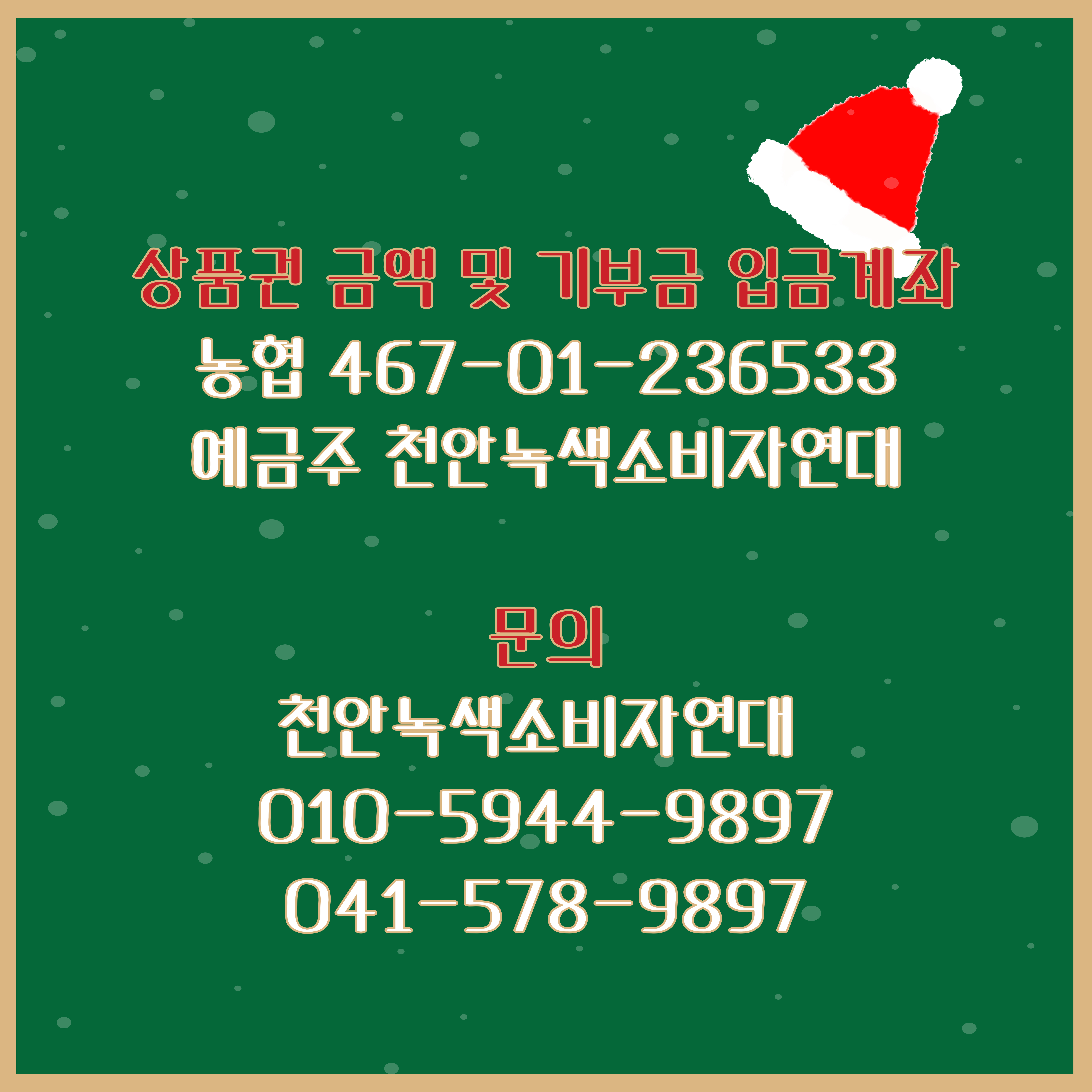 2023년 한 해 동안 열심히 달려온 천안녹색소비자연대의 산타가 되어주세요!