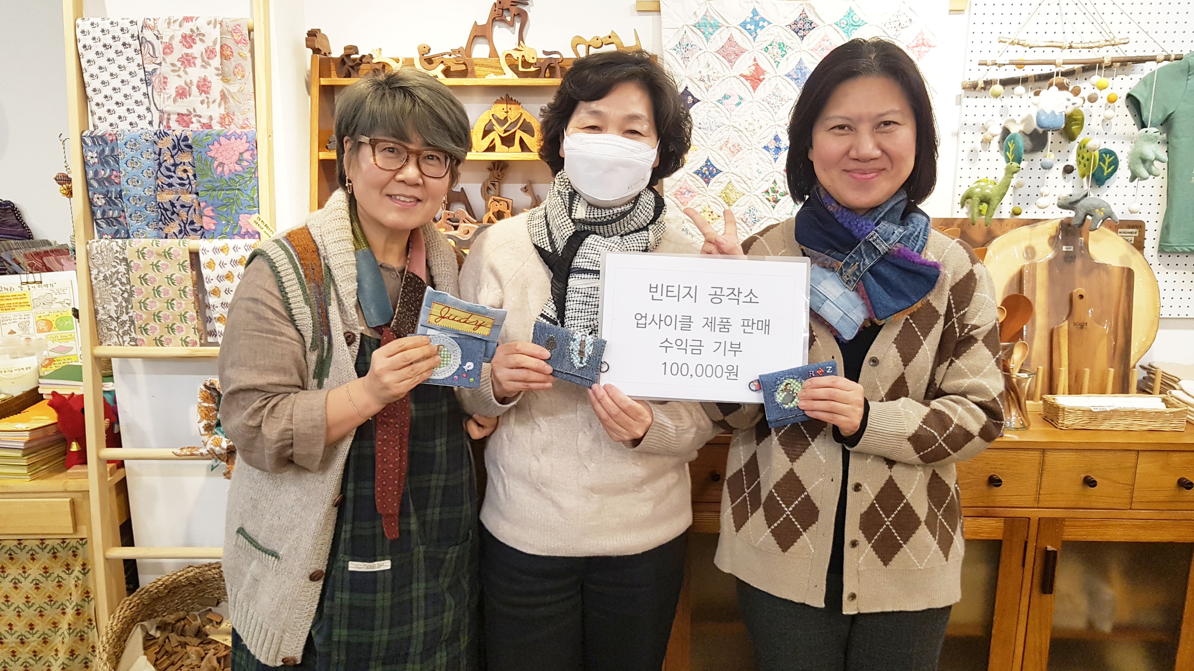 손바느질 모임 <빈티지 공작소>에서 직접 만드신 업사이클 제품 판매 수익금을 기부해주셨습니다.
