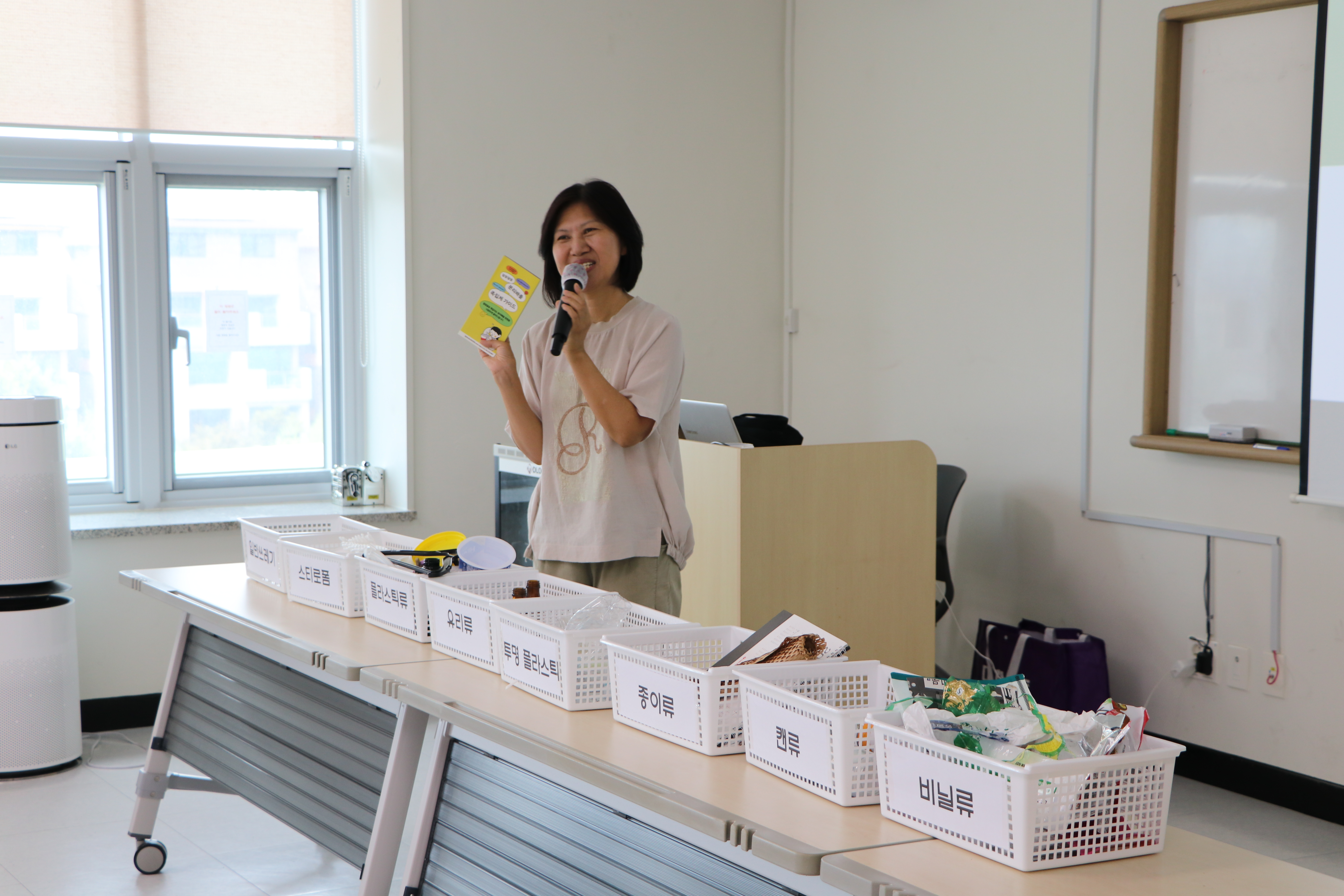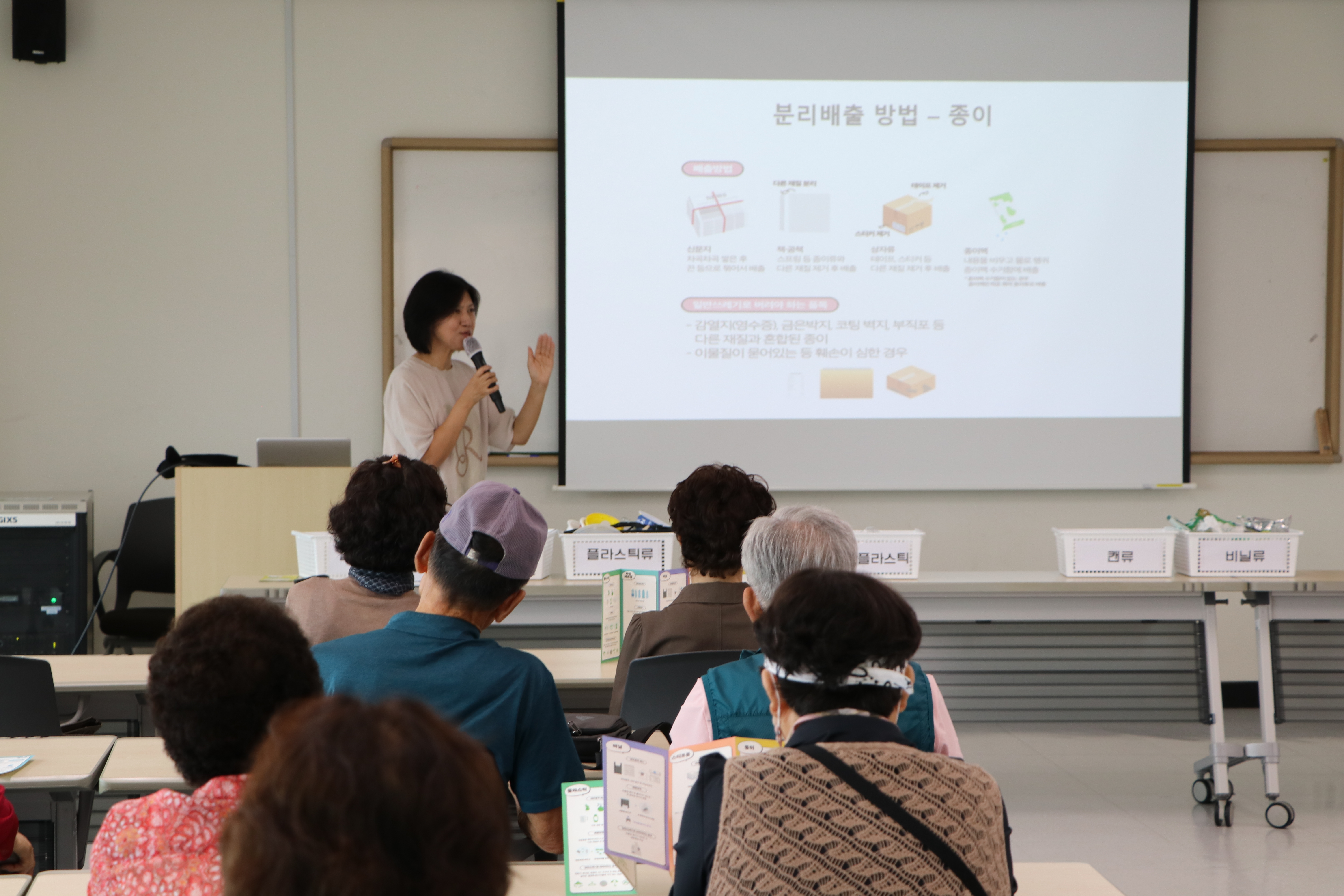 천안시종합사회복지관에서 어르신들을 대상으로 자원순환 교육 진행했습니다. 알쏭달쏭한 재질이 많은 재활용 쓰레기들을 직접 분류까지 해보았습니다.