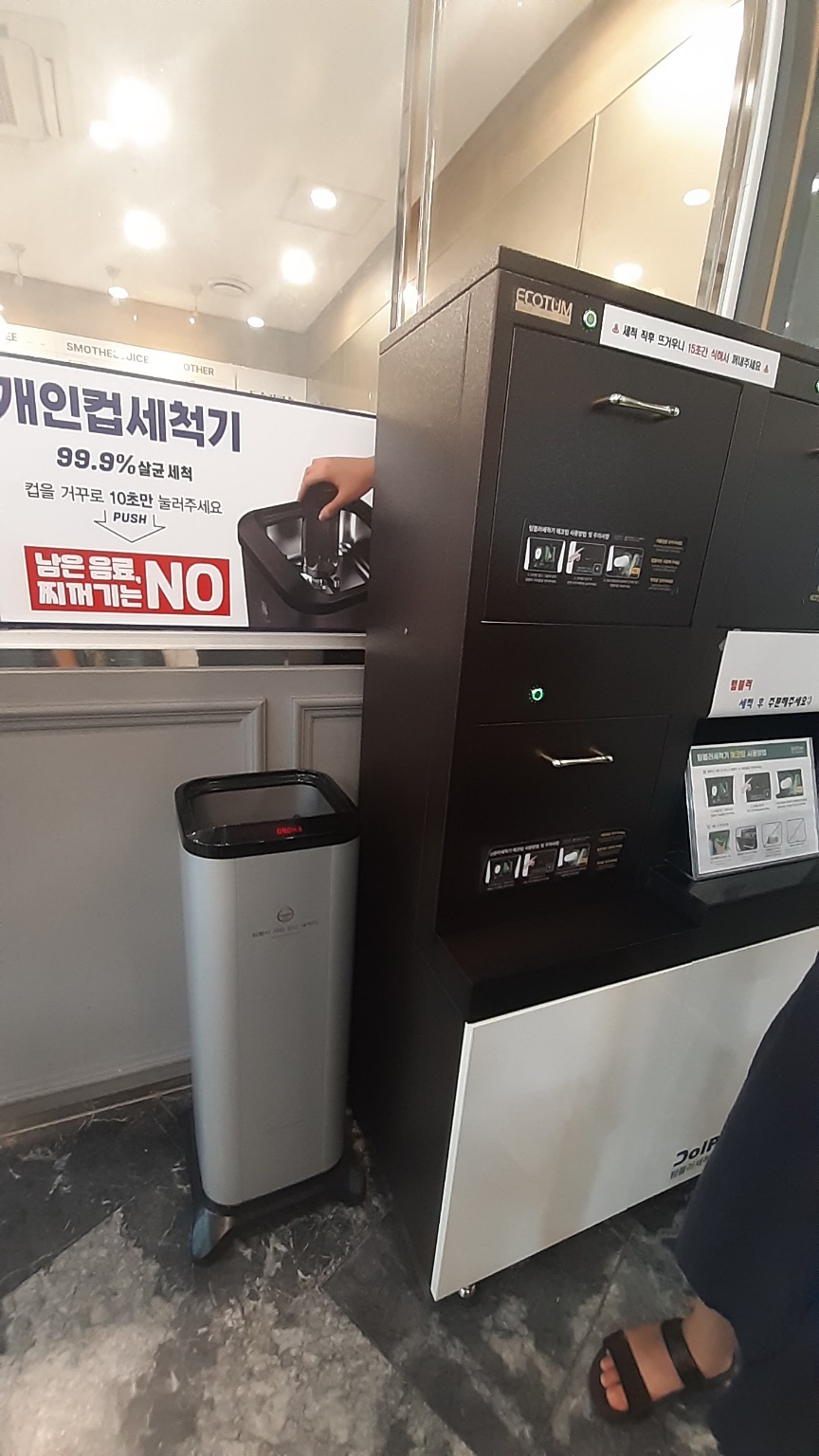 개인컵 사용을 독려하기 위해 설치된 세척기가 유명무실합니다.
