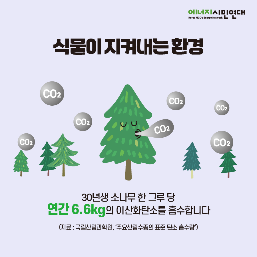 1️⃣30살 소나무는 한 그루 당 연간 6.6kg의 이산화탄소를 흡수