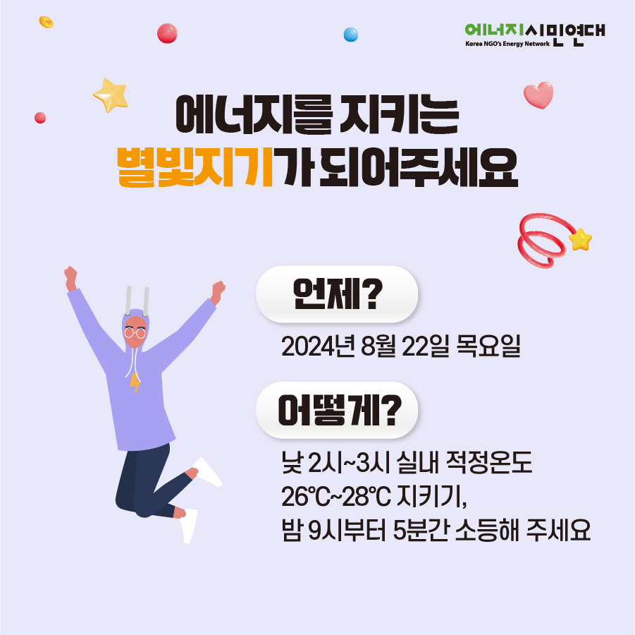 | [0822_불을 끄고 별을 켜다 ⑥] 8월 22일은 에너지의 날!! 별빛지기가 되어주세요. (0) | 2024.08.20 |