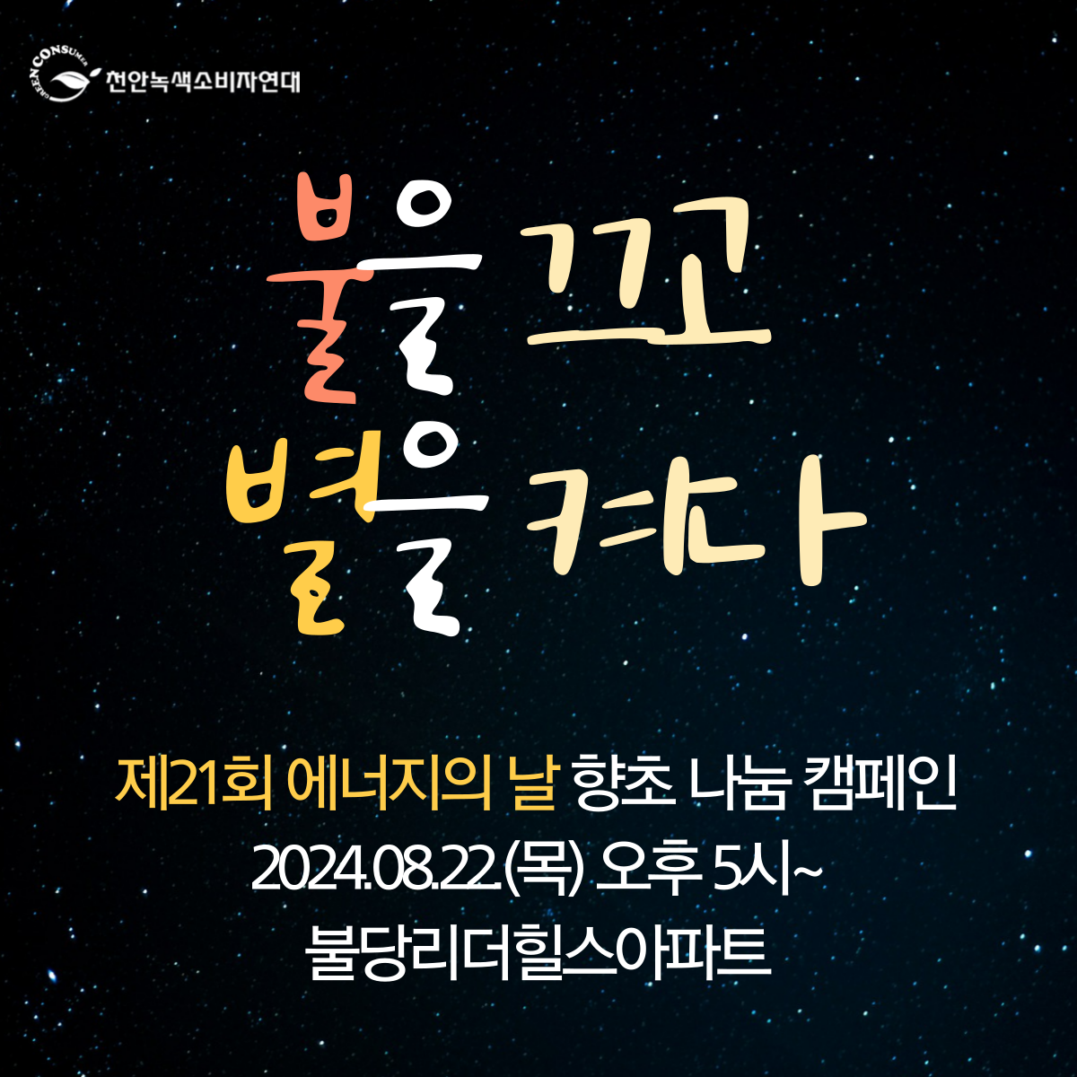 | [0822_불을 끄고 별을 켜다 ⑥] 8월 22일은 에너지의 날!! 별빛지기가 되어주세요. (0) | 2024.08.20 |