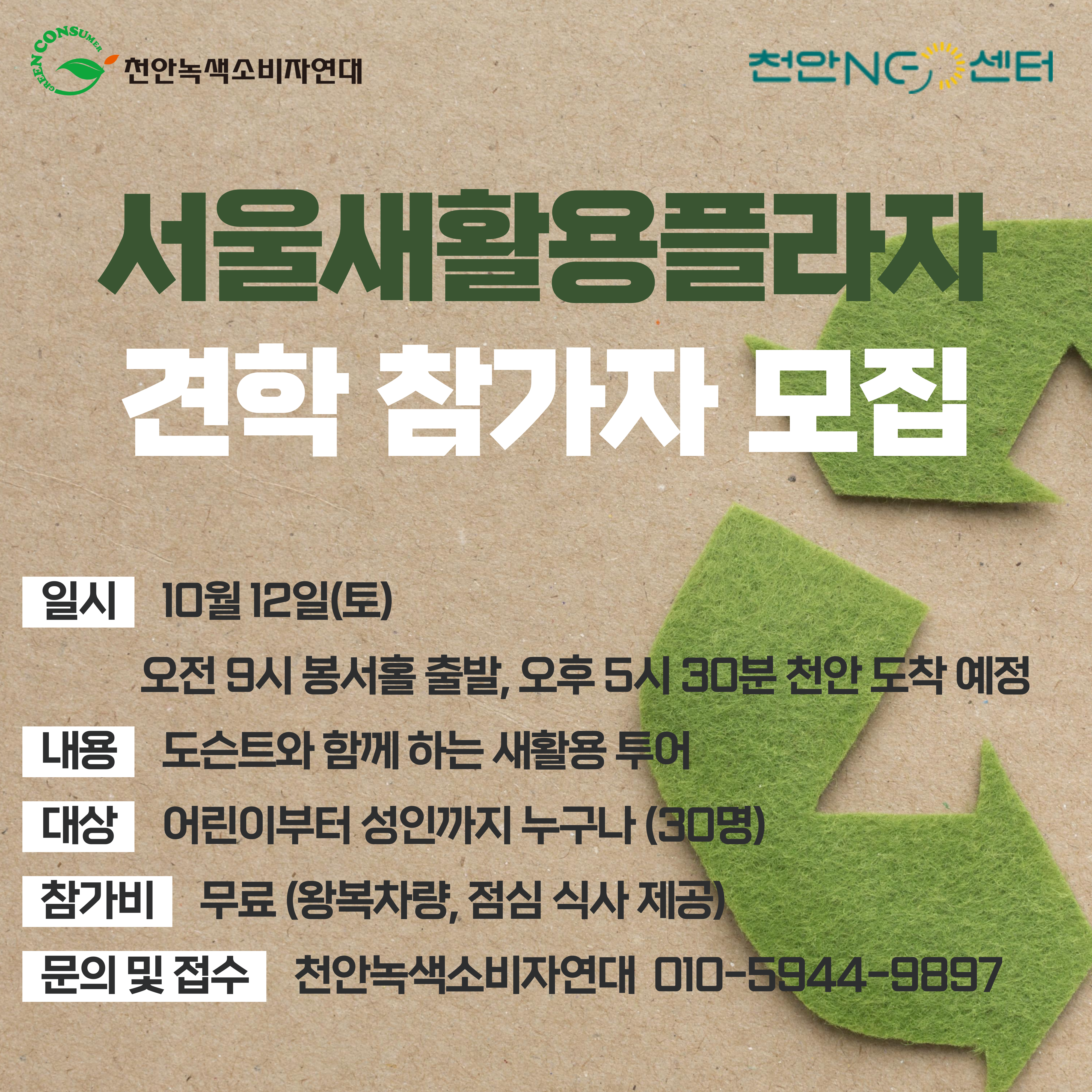 ☛ 참여 신청 및 문의 : 010-5944-9897 천안녹색소비자연대