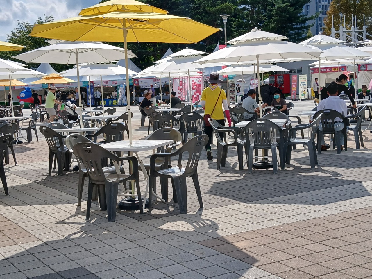 천안시에서는 올해 흥타령춤축제에서 처음으로 푸드존 다회용기 제공 서비스를 시작하였습니다. 시민들은 다회용기에 식음료를 받고 반납부스에 용기를 반납하는 방식입니다. 우리 지역 축제에서 처음 보는 광경으로 반가움이 크지만, 모든 부스가 해당되지 않는 점은 여전히 아쉽습니다. 닭강정이나 묵밥 등은 다회용기에 받을 수 있지만 김밥이나 만두 등은 이미 일회용품에 포장된 상태로 판매가 됩니다. 설거지의 어려움 때문인지 다회용기에 비닐을 씌운 후 음식을 제공하는 부스도 있었습니다.