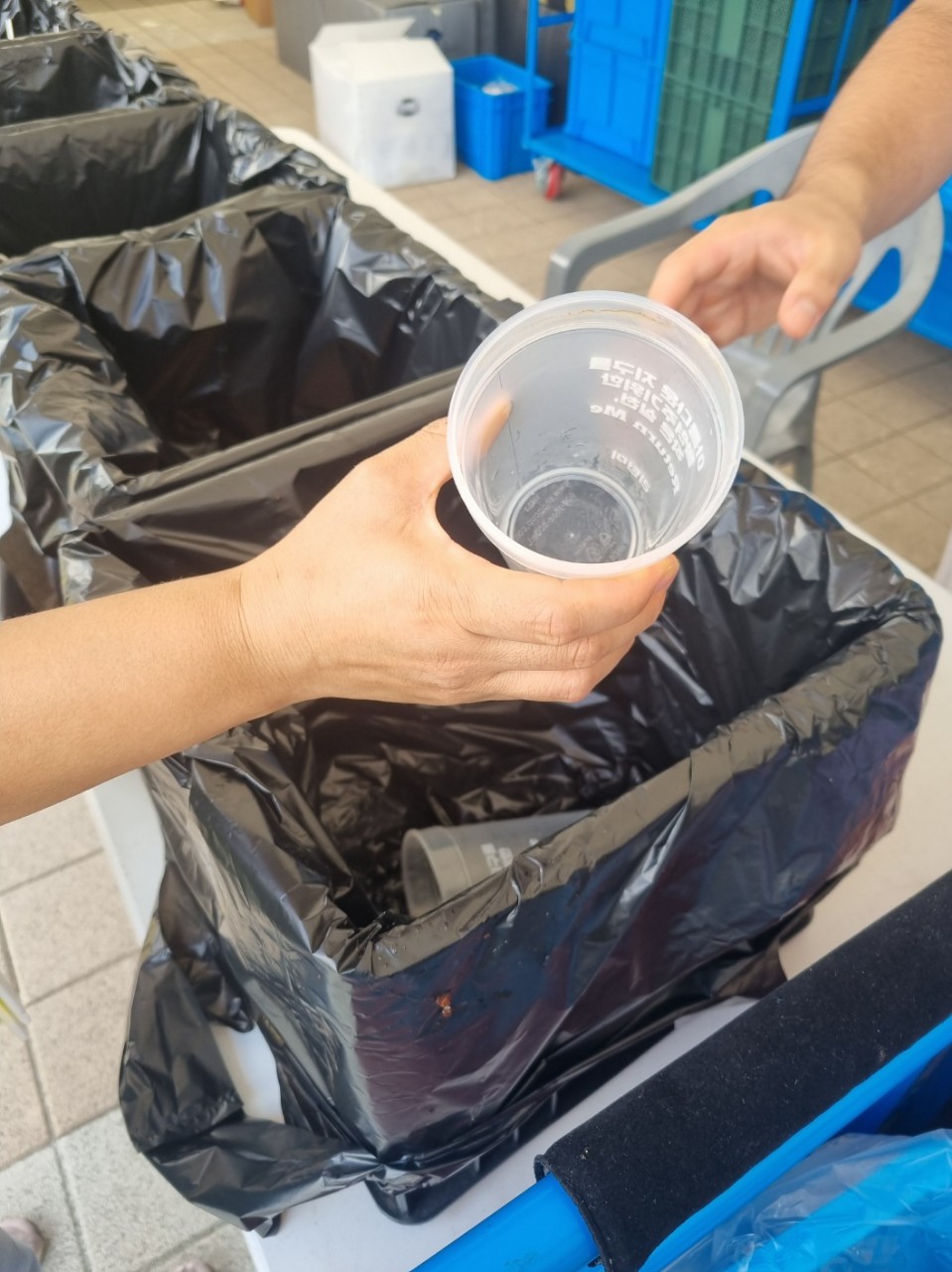 용기 크기별로 반납할 수 있도록 잘 구분되어 있었지만 음료용 리유저블컵과 소스통의 반납량이 너무 적습니다. 보시다시피 일반 테이크아웃용 일회용품과 생김새가 유사하여 그대로 버려졌을 수도 있겠다는 합리적 의심이 들지요. 그래서인지 오늘은 음료를 뚜껑 없이 제공하고 있다고 하네요.