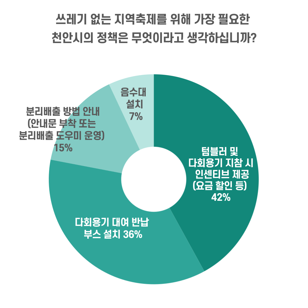 ‘일회용품 쓰레기 없는 축제를 만들겠다’는 천안시의 의지가 사전에 시민들과 충분히 공유되었다면 다회용기를 플라스틱 쓰레기로 버리는 사람도, 아무 거리낌 없이 병물을 사먹는 사람도 없었을 것입니다.