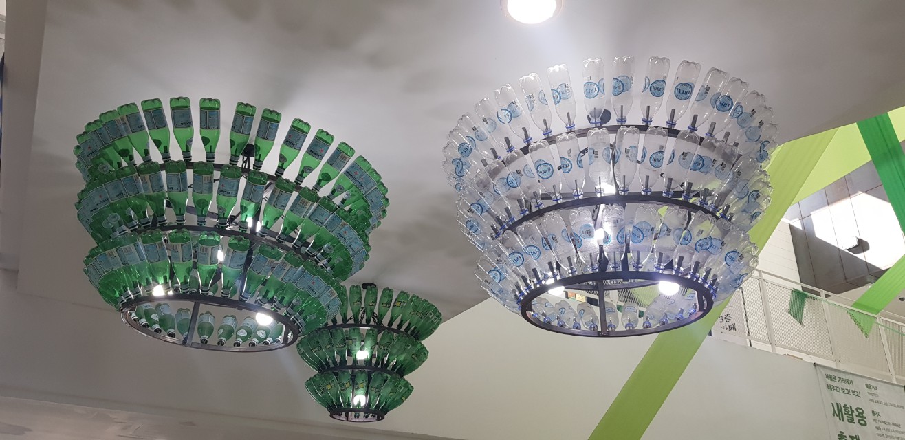 서울녹색구매지원센터를 방문해 환경문제를 해결하기 위한 녹색소비와 녹색구매의 중요성에 대해 알아본 후 도슨트 투어를 시작했습니다. 병뚜껑, 종이팩, 비닐, 천막천, 유리병, 폐의류 등 다양한 소재의 쓰레기들의 멋진 탈바꿈을 목격했습니다.