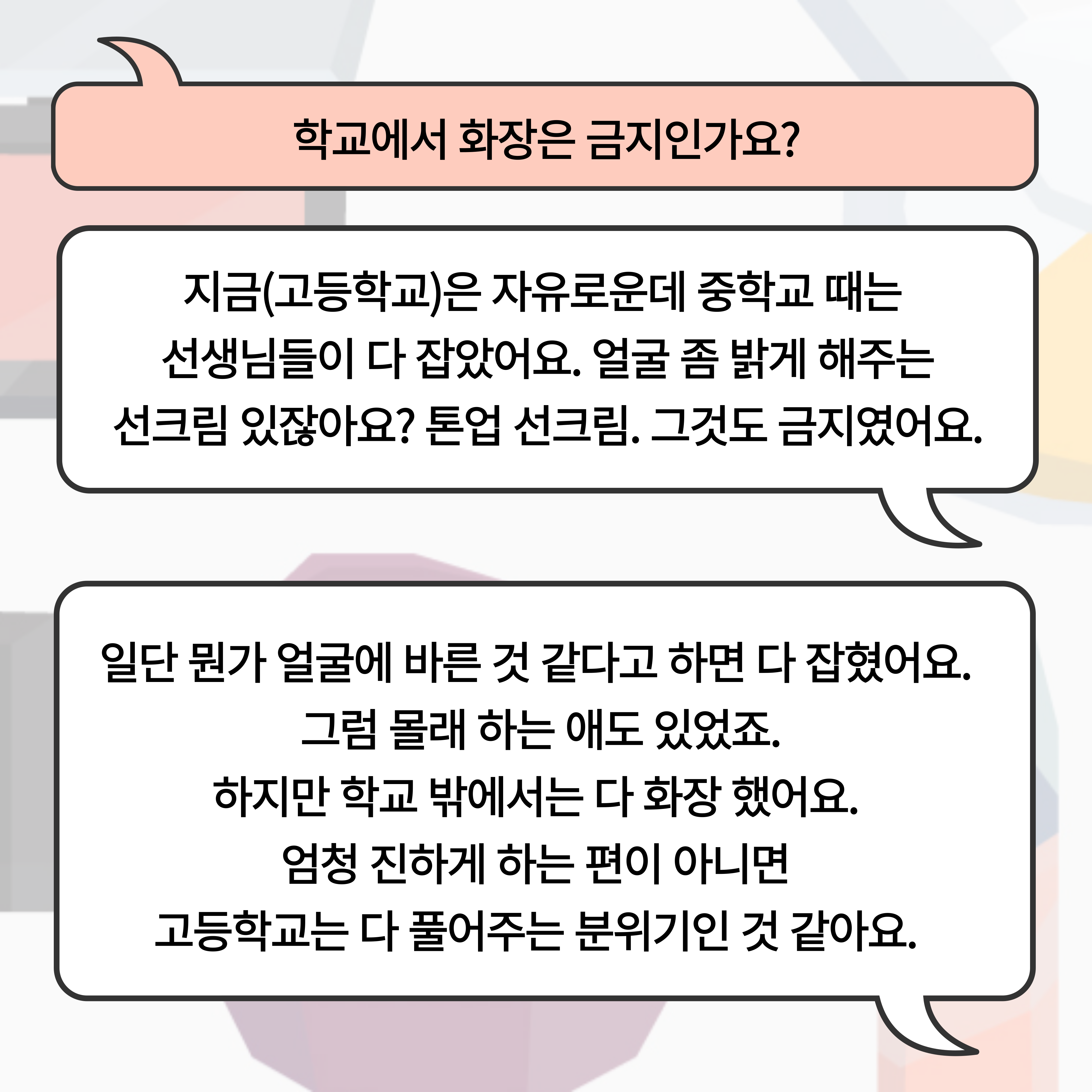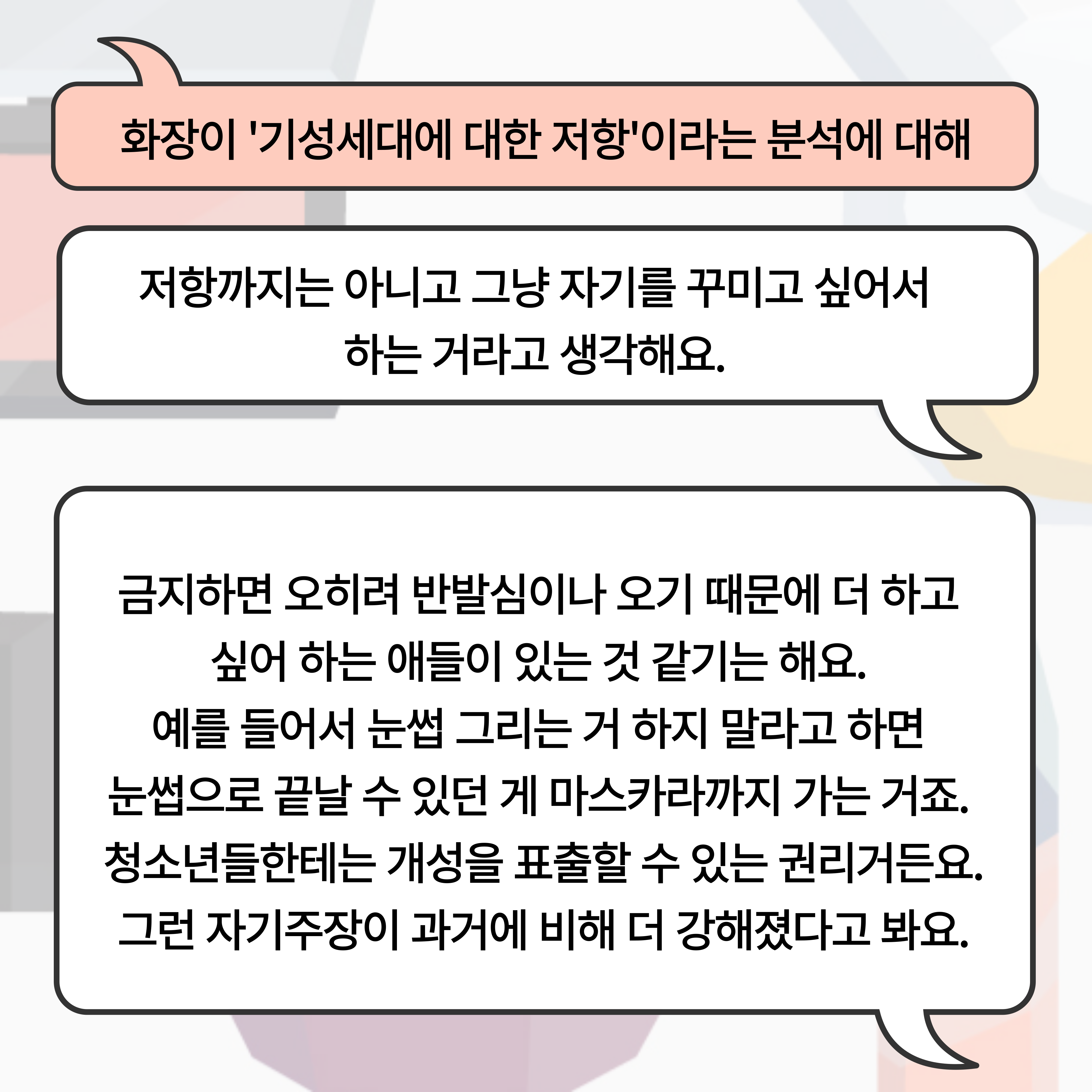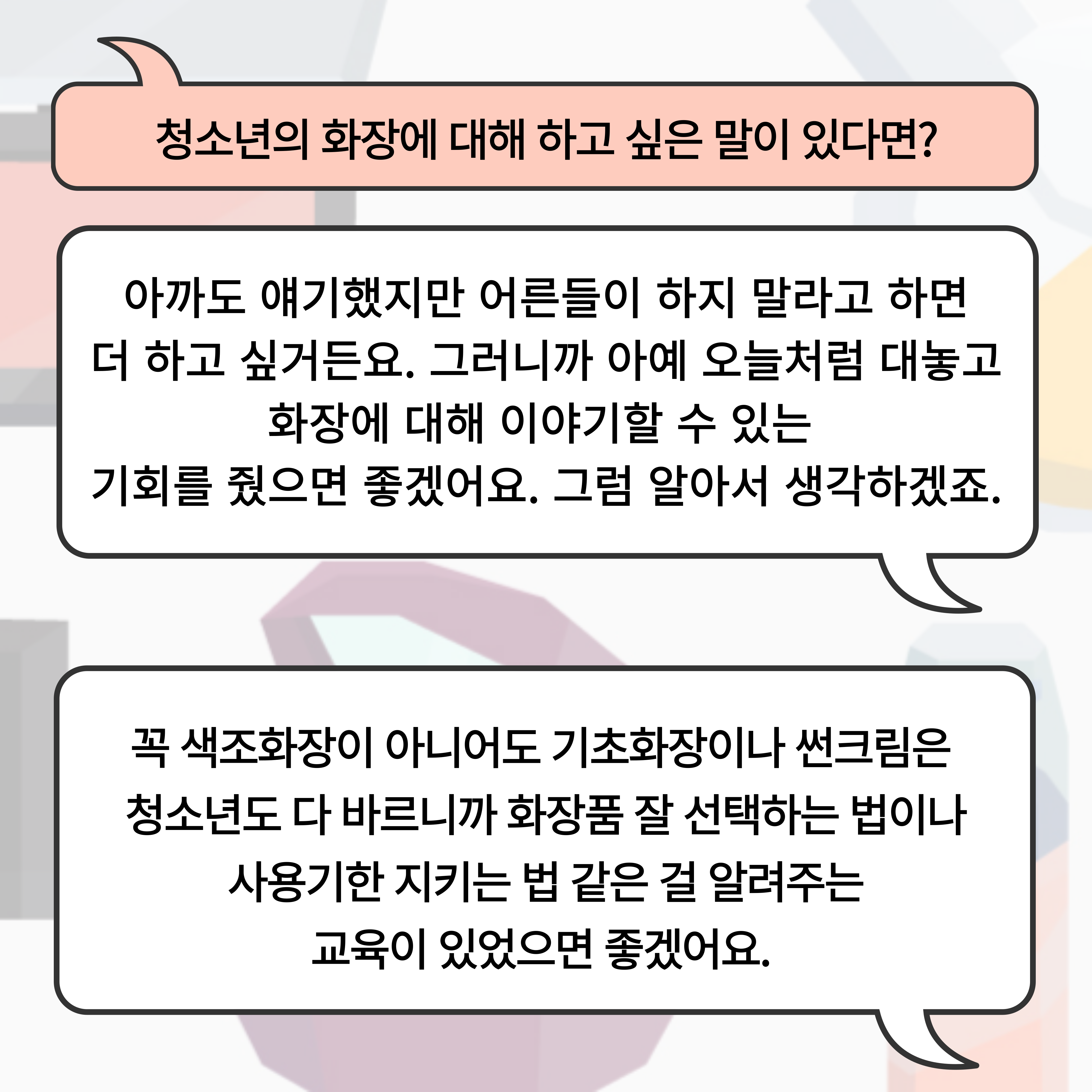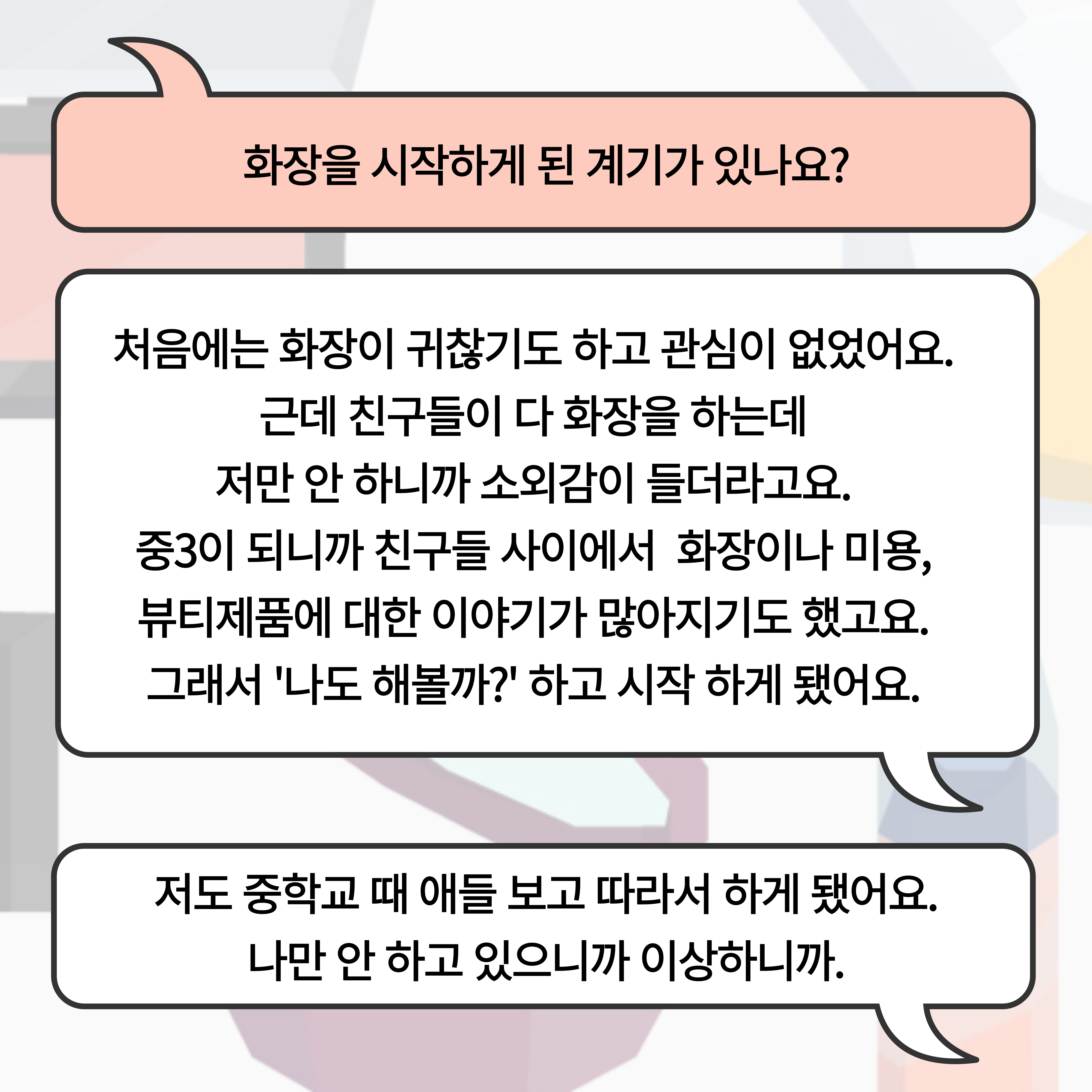 | <화장을 한다는 것에 대하여> 연속 인터뷰 vol.2 대학생 (0) | 2024.10.23 |