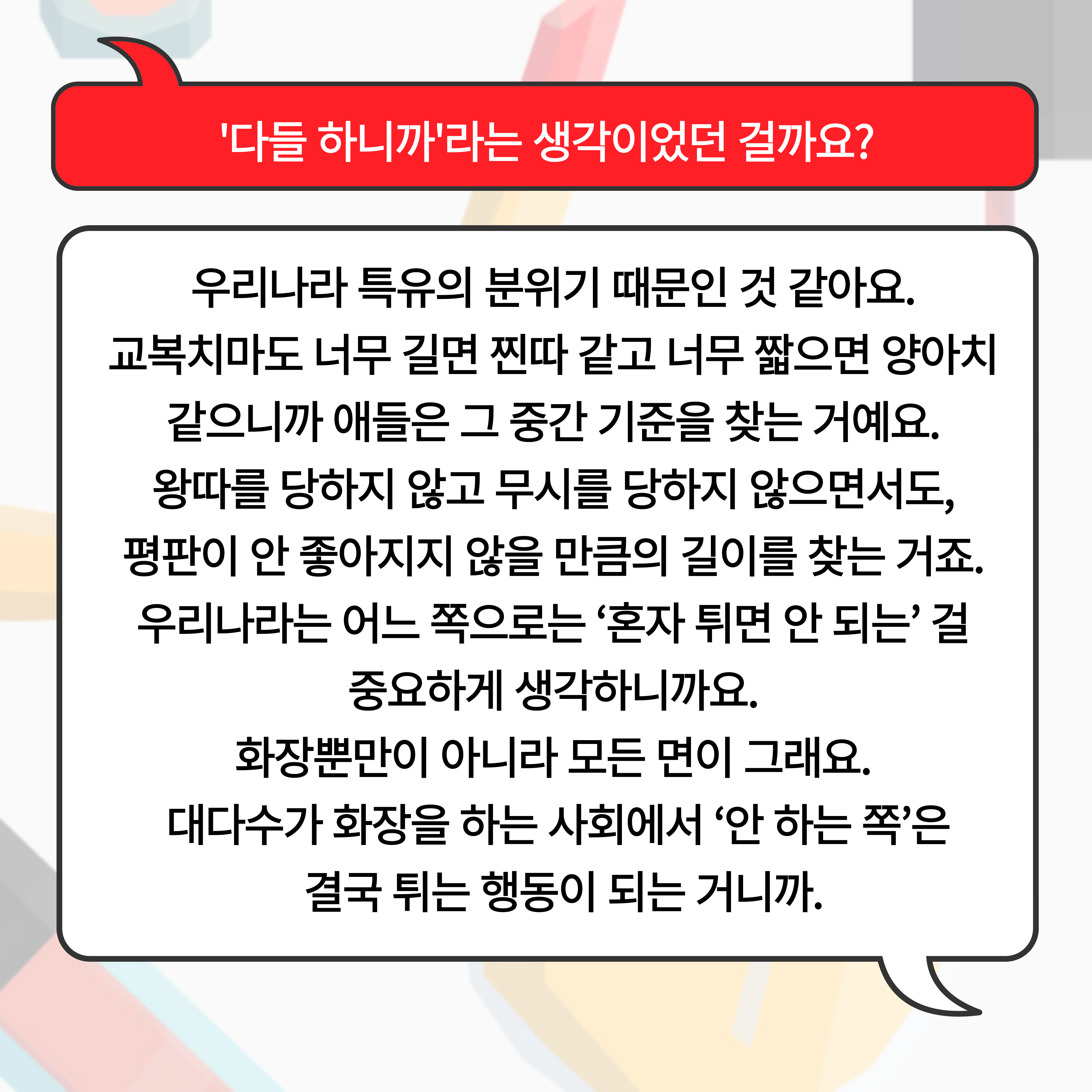 | <화장을 한다는 것에 대하여> 연속 인터뷰 vol.1 청소년 (0) | 2024.10.21 |